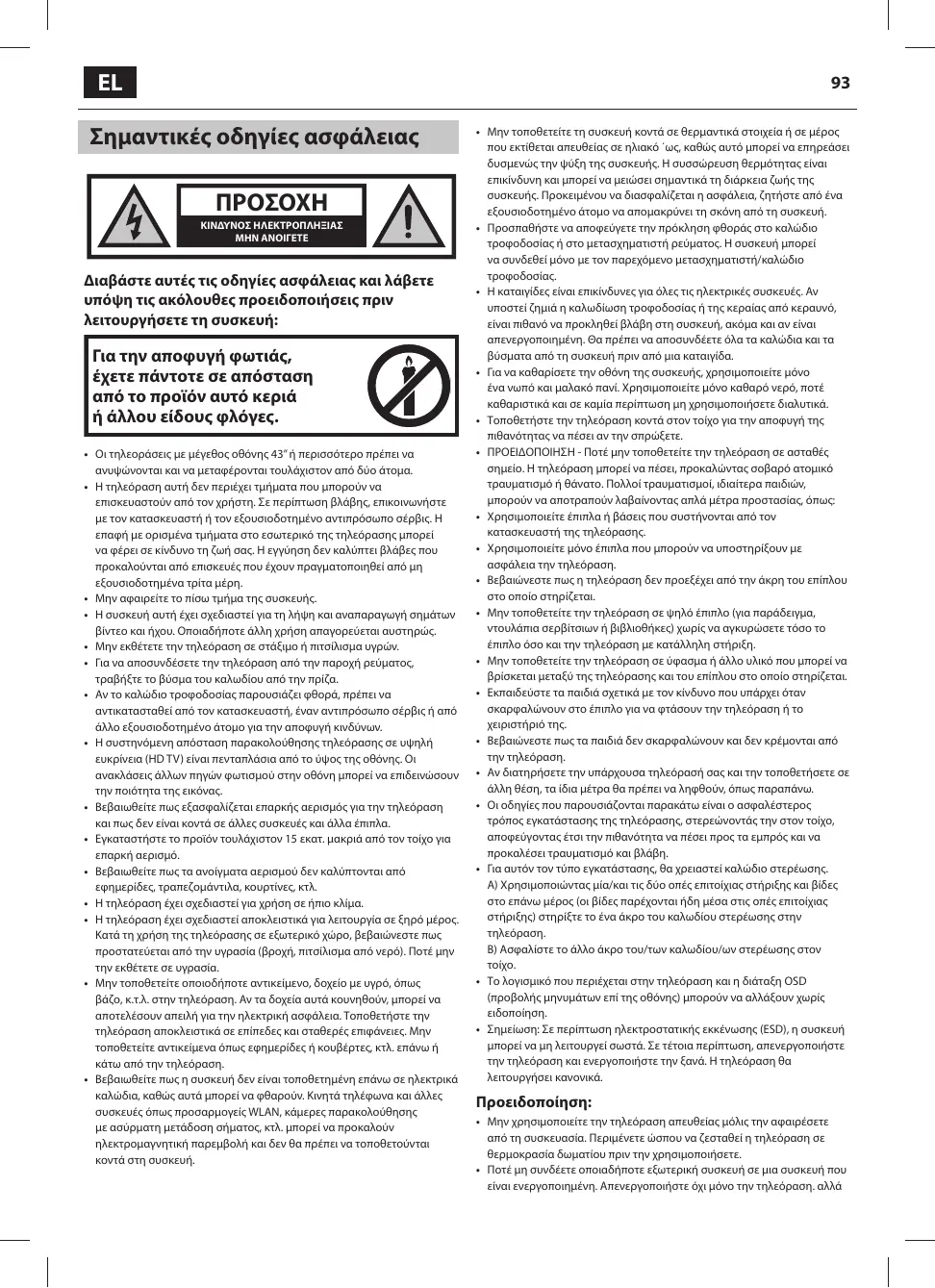 Ne placez pas d'objets, de récipients remplis de liquide, comme des vases, ete. sur la télévision. Ces récipients pourraient tre renversés, ce qui mettrait en danger la sécurité électrique. Placer la TV exclusivement sur des surfaces plates et stables, Ne placer aucun objet tel qu'un journal ou une couverture, etc. sur ou sous la TV.