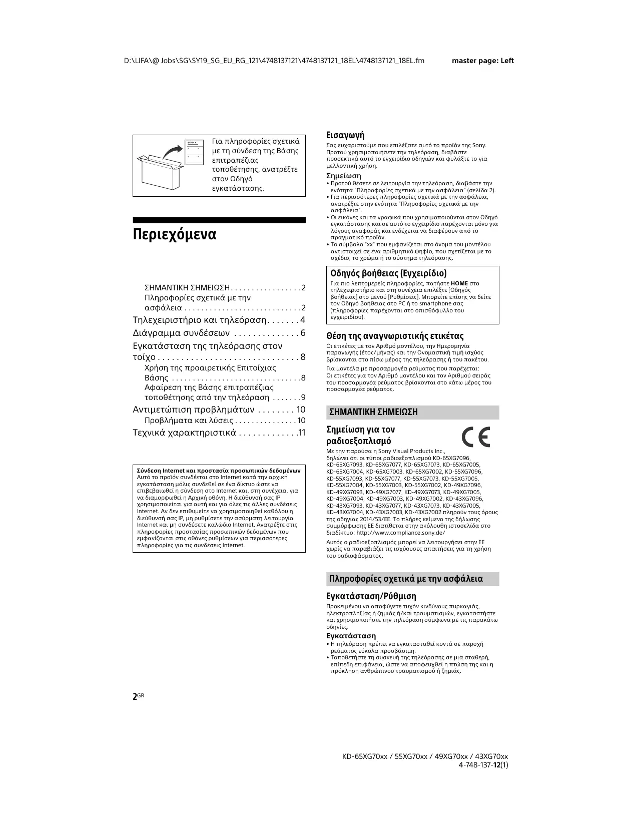 KD-65XG70xx / 55XG7Oxx / 49XG70xx / 43XG70xx