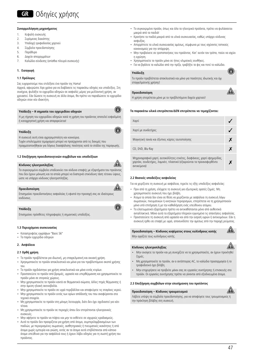 Retrouvez gratuitement la notice de l'appareil Destructeur de documents HAMA au format PDF.