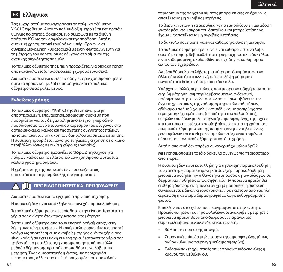 YK-81CEU - παλμικό οξύμετρο BRAUN - Δωρεάν εγχειρίδιο χρήσης