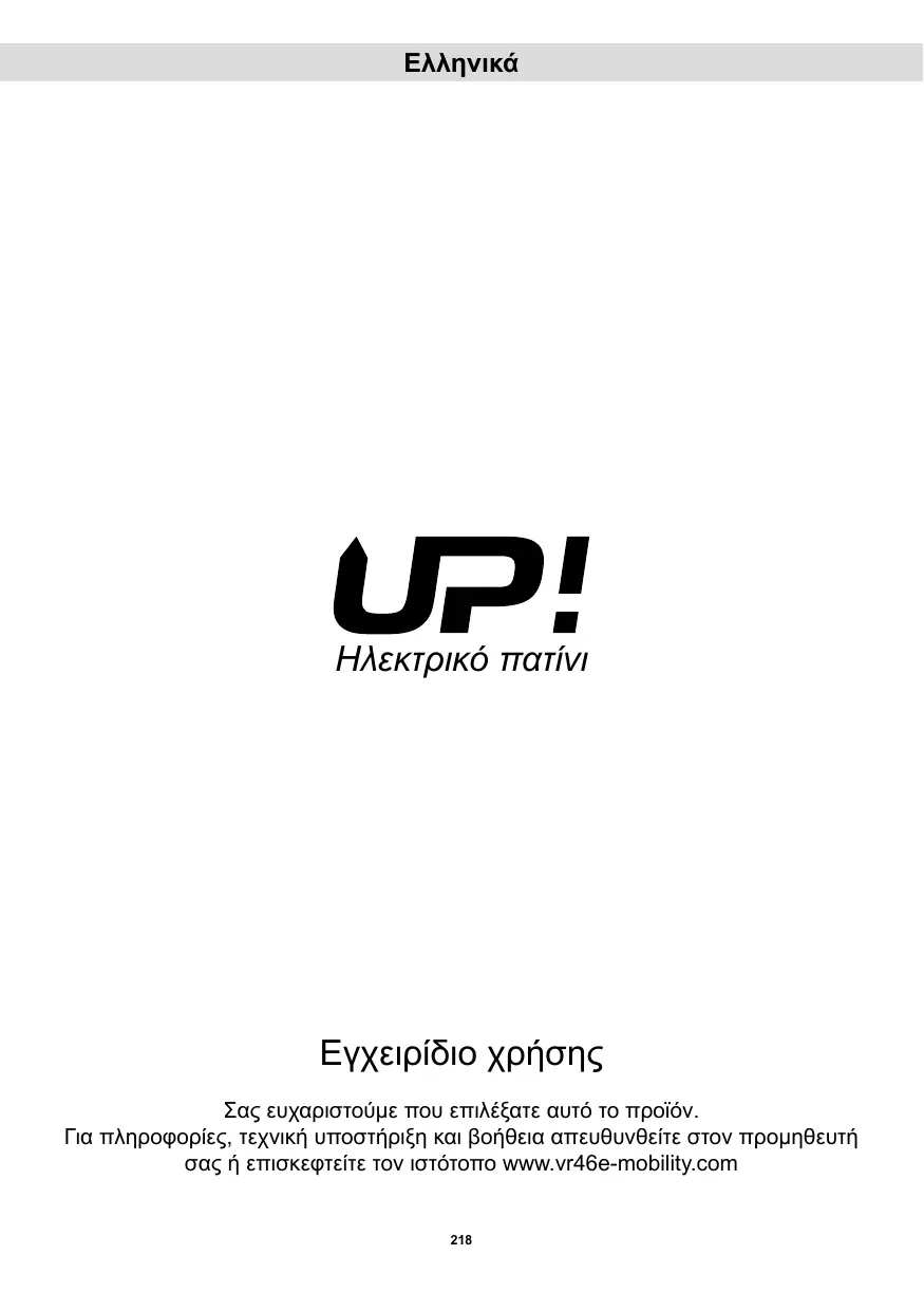 Téléchargez la notice de votre Ηλεκτρικό πατίνι au format PDF gratuitement ! Retrouvez votre notice VR46 - UP! et reprennez votre appareil électronique en main. Sur cette page sont publiés tous les documents nécessaires à l'utilisation de votre appareil VR46 de la marque UP!.