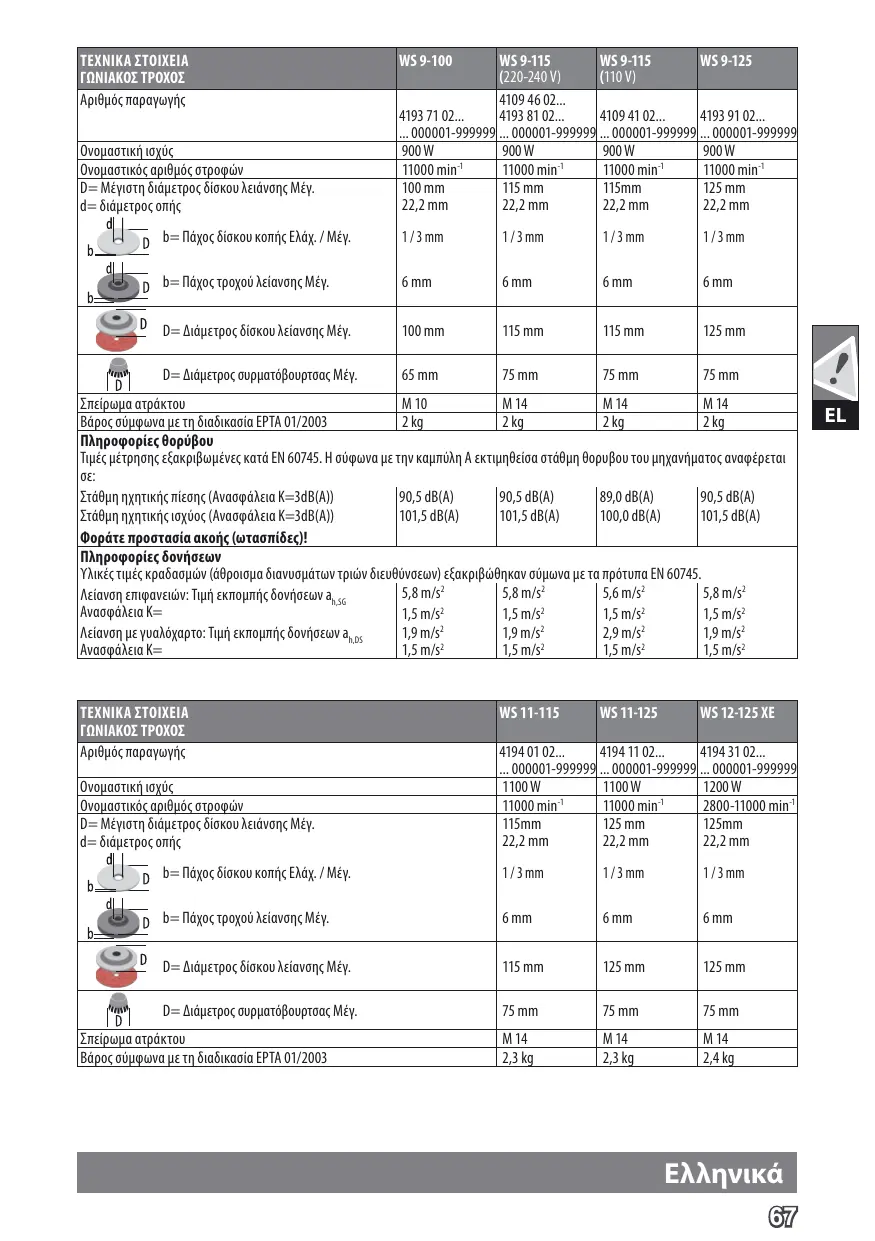 Modèle : WS 9-100, WS 9-115, WS 9-125, WS 11-115, WS 11-125, WS 12-125 XE