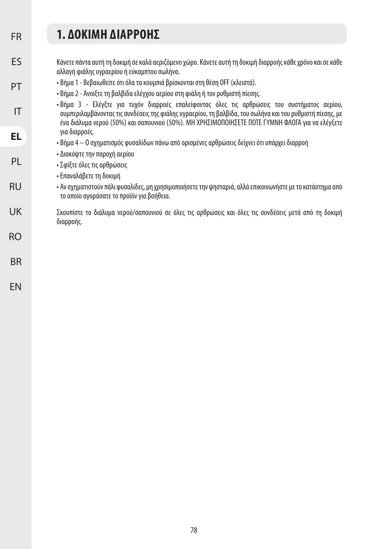 (50 %). N'UTILISEZ JAMAIS DE FLAMME NUE pour tester les fuites.