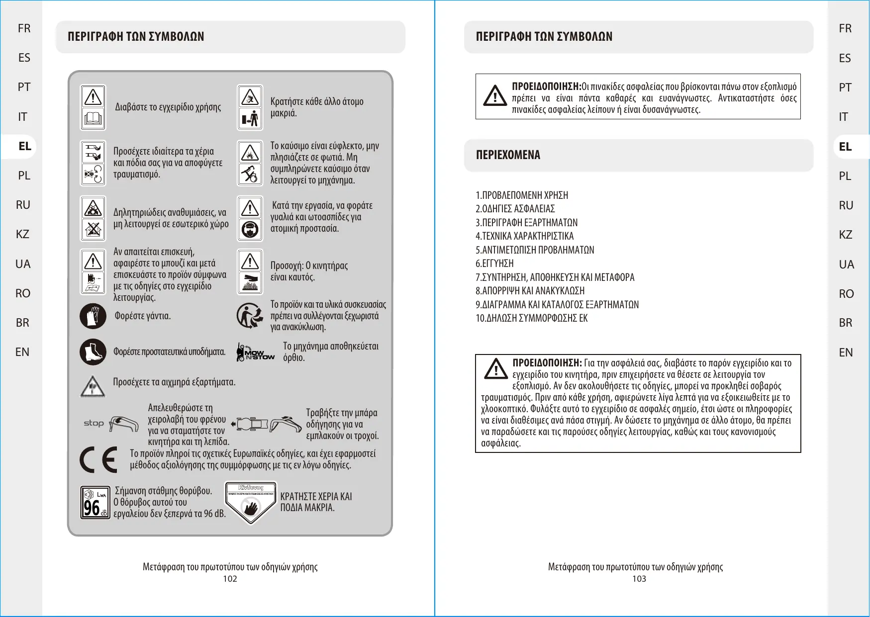 + N'utilisez jamais la tondeuse à gazon si l'un de ses boudiers de protection est défectueux ou sil'un de ses dispositifs de sécurité n'est pas assemblé, par exemple les déflecteurs/volets et/ou le sac/bac de ramassage.