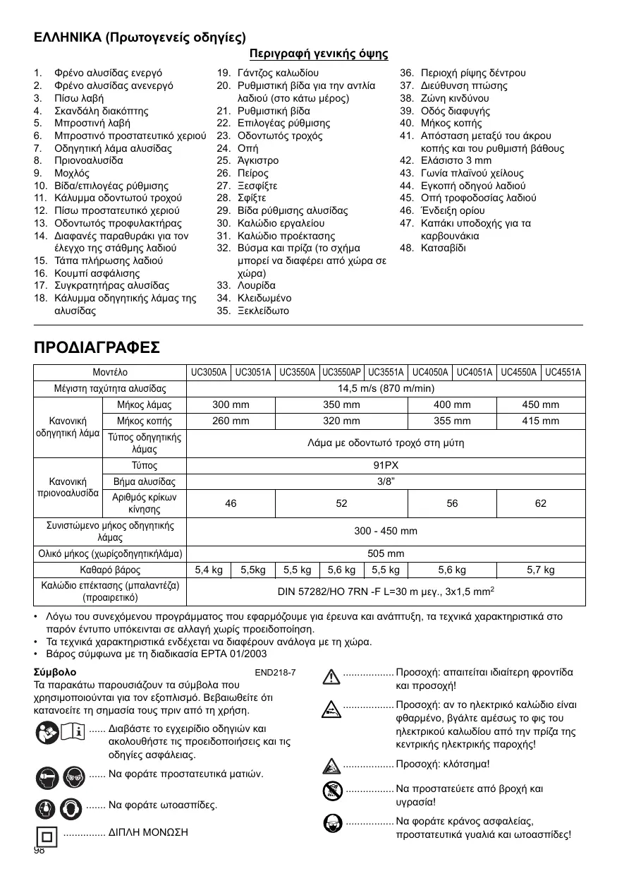 Téléchargez la notice de votre ηλεκτρικό αλυσοπρίονο au format PDF gratuitement ! Retrouvez votre notice UC3551A - MAKITA et reprennez votre appareil électronique en main. Sur cette page sont publiés tous les documents nécessaires à l'utilisation de votre appareil UC3551A de la marque MAKITA.