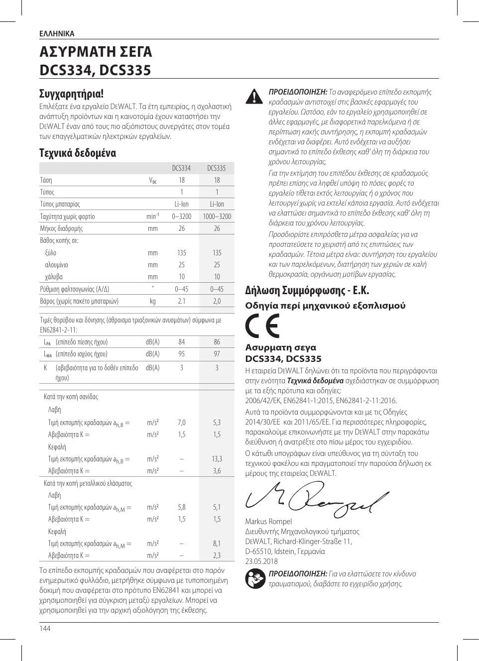 Téléchargez la notice de votre Ασύρματο σέγα au format PDF gratuitement ! Retrouvez votre notice DCS334NT-XJ - DCS334 - DCS335 - DEWALT et reprennez votre appareil électronique en main. Sur cette page sont publiés tous les documents nécessaires à l'utilisation de votre appareil DCS334NT-XJ - DCS334 - DCS335 de la marque DEWALT.