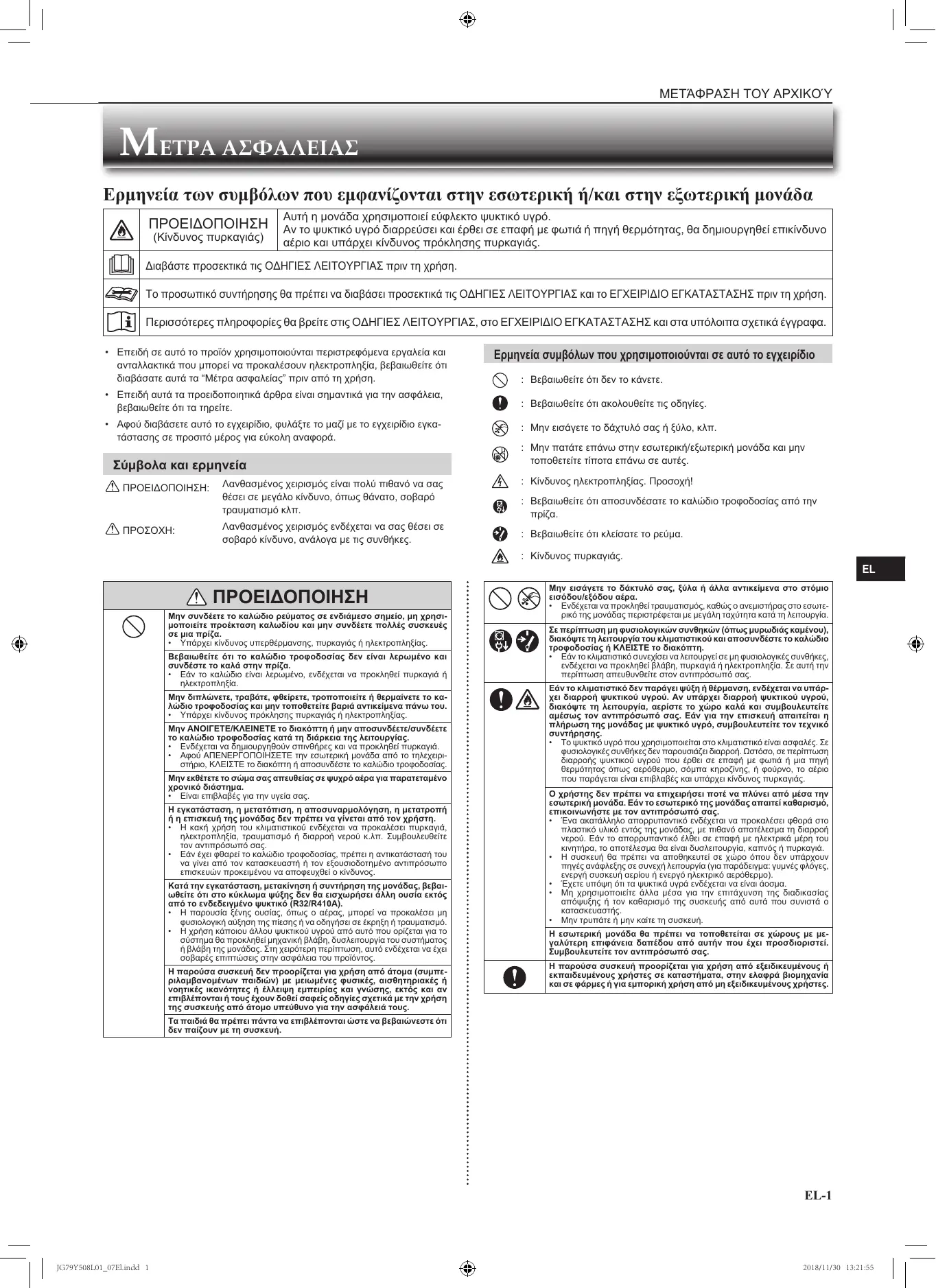 + Toute manipulation incorrecte du climaiseur pourrait provoquer un risque d'incendie, d'électrocution, de blessure ou de fuite d'eau, etc.