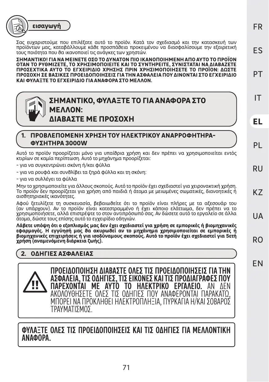 Blower 3000W EVB2.4 - φυσητήρας φύλλων STERWINS - Notice d'utilisation et mode d'emploi gratuit