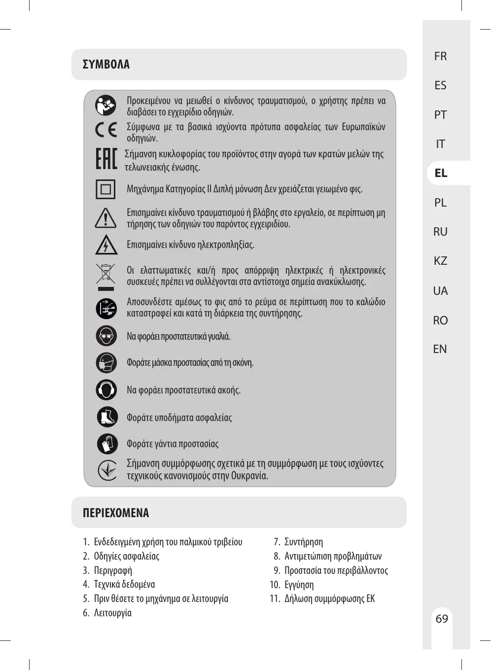 EN 55014-1:2017; EN 55014-2:2015 EN 61000-3-2:2014; EN 61000-3-3:2013 IEC 62321-1:2013; IEC 62321-2:2013 IEC 62321-3-1:2013; IEC 62321-4:2013-AMD1:2017 CSV IEC 62321-5:2013; IEC 62321-6:2015 1EC62321-7-1:2015; IEC 62321-7-2:2017 IEC 62321-8:2017; ISO 17075:2017 EN @ Indossare una maschera antipolvere. © Indossare dispositivi di protezione per le orecchie. Q Indossare calzature di sicurezza. © Indossare guanti di protezione. EN 61000-3-2:2014; EN 61000-3-3:2013 IEC 62321-1:2013; IEC 62321-2:2013