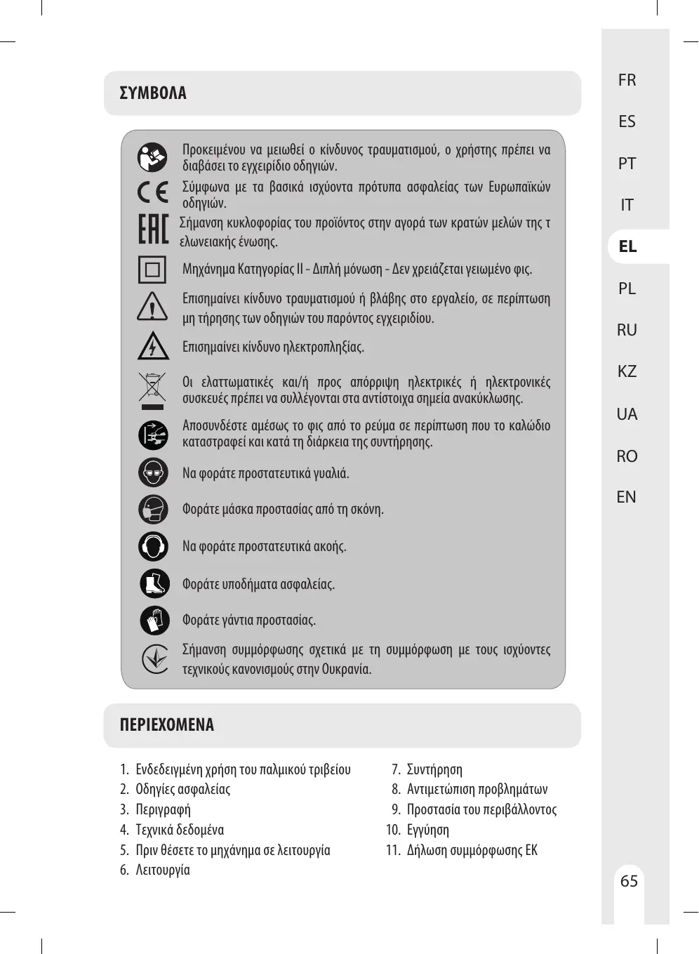 1. Domaine d'utilisation de la ponceuse 6. Fonctionnement vibrante 7. Entretien 2. Consignes de sécurité 8. Dépannage 3. Description 9. Protection de l’environnement 4. Données techniques 10. Garantie 5. Avant la mise en service de l'appareil 11. Dédaration de conformité CE