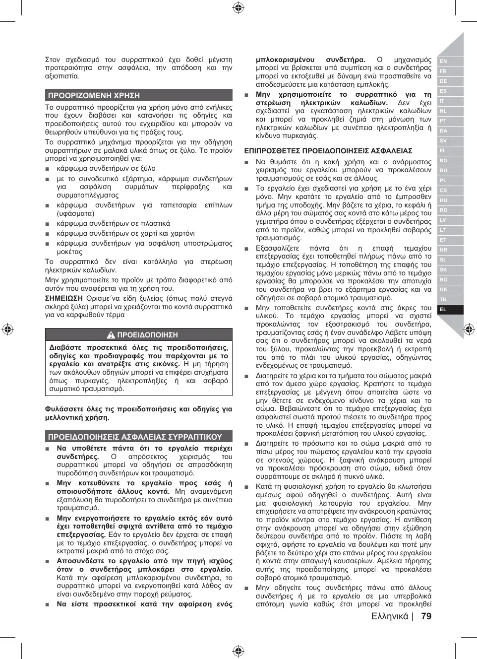 = Débranchez l'outil de sa source de courant en cas de blocage d'agrafes dans l'outil. Lors du retrait d'une fixation coincée, l'agrafeuse peut être activée par accident si elle est branchée.
