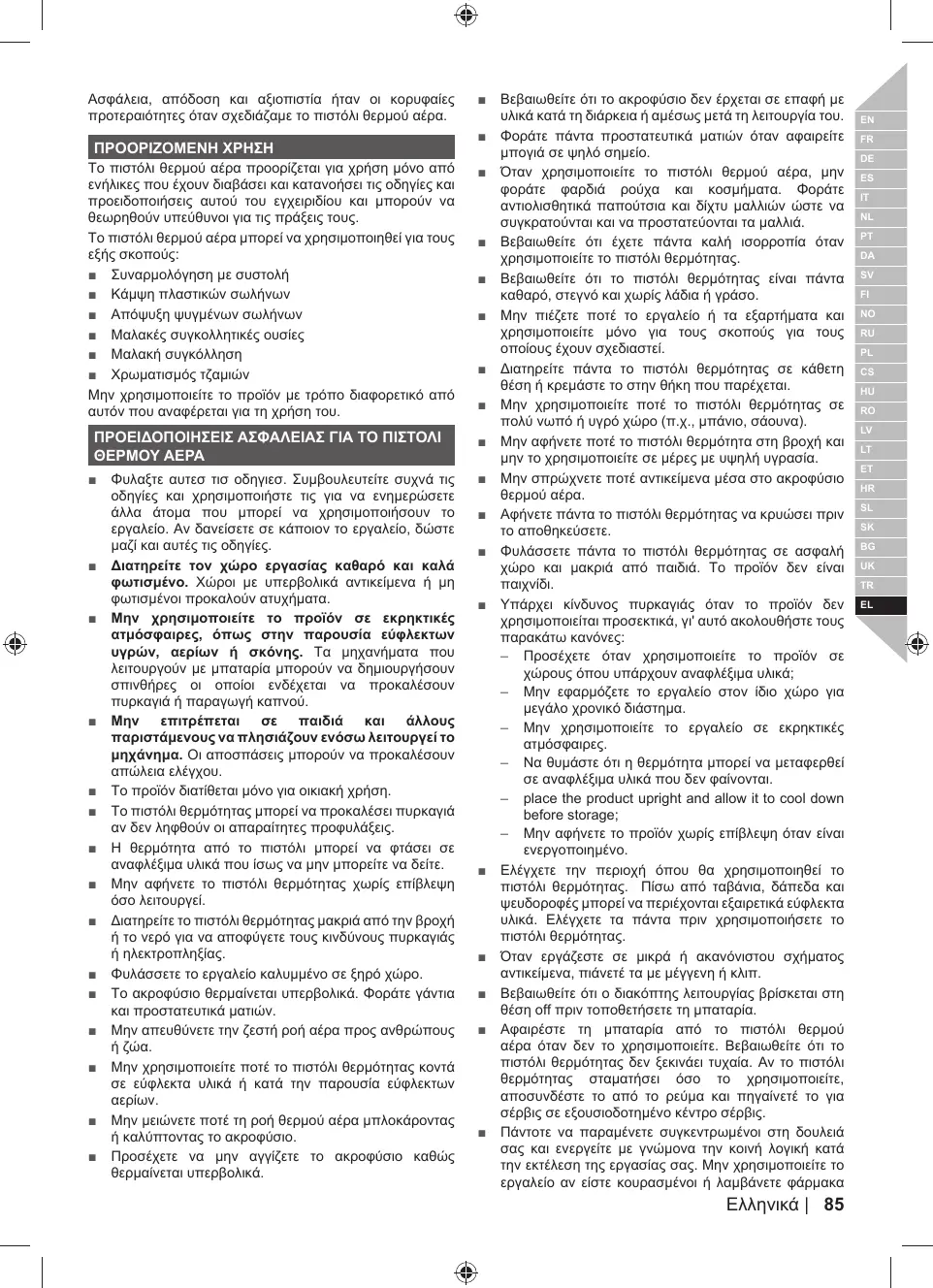 = Gardez le pistolet thermique éloigné de la pluie et de l'eau afin d'écarter tout risque d'incendie ou de décharge électrique.