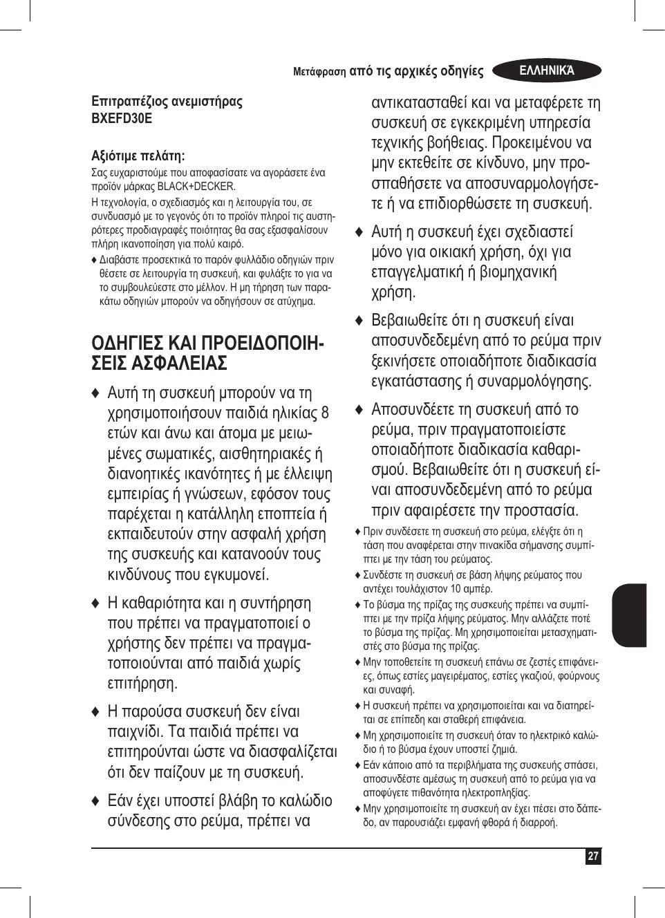 BXEFD30E - ανεμιστήρας BLACK & DECKER - Notice d'utilisation et mode d'emploi gratuit
