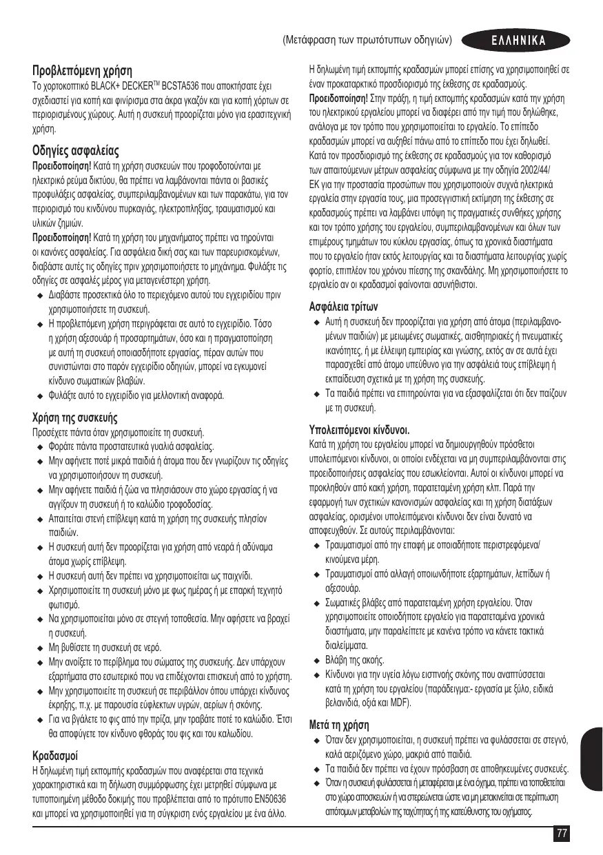 Téléchargez la notice de votre Κονταροπρίονα au format PDF gratuitement ! Retrouvez votre notice BCSTA536 - BLACK & DECKER et reprennez votre appareil électronique en main. Sur cette page sont publiés tous les documents nécessaires à l'utilisation de votre appareil BCSTA536 de la marque BLACK & DECKER.