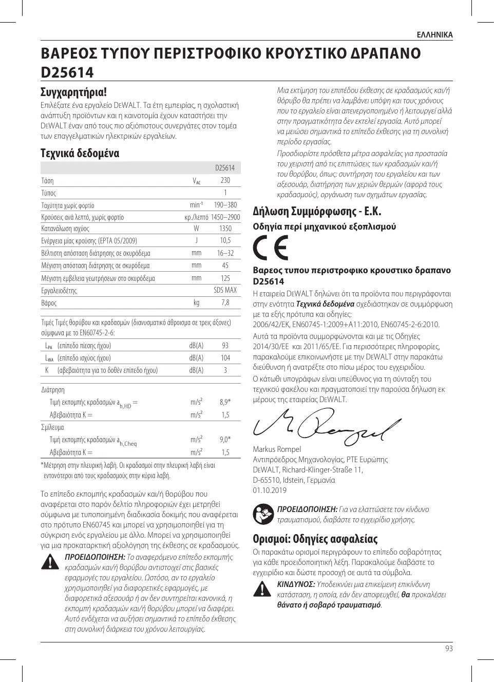 Le soussigné est responsable de la compilation du fichier technique et fait cette déclaration au nom de DEWALT.