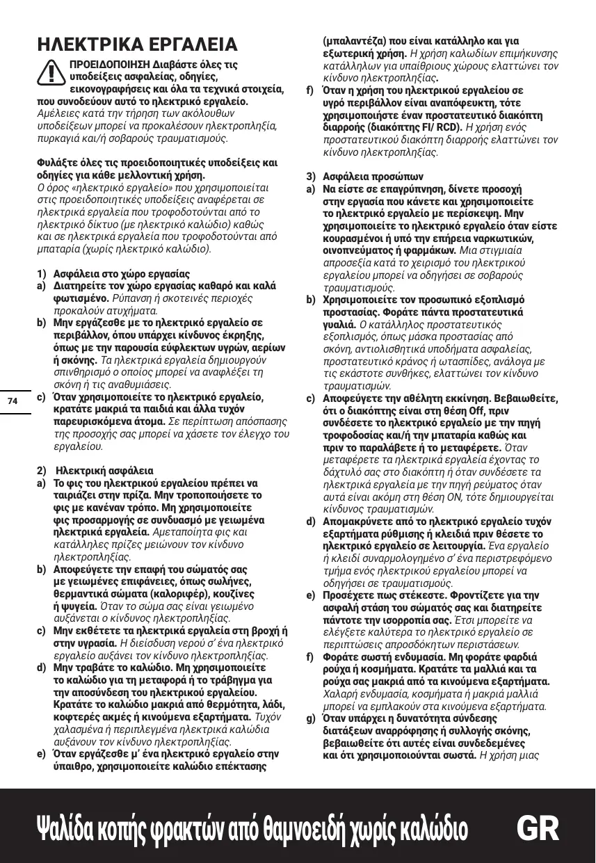 ir l'outil par ses surfaces antidérapantes et isolées si l'outil de coupe risque d'entrer en contact avec des câbles cachés. L'entrée en contact avec un câble sous tension rendra les parties en métal de l'outil également sous tension et l'utilisateur pourrait recevoir une décharge électrique.