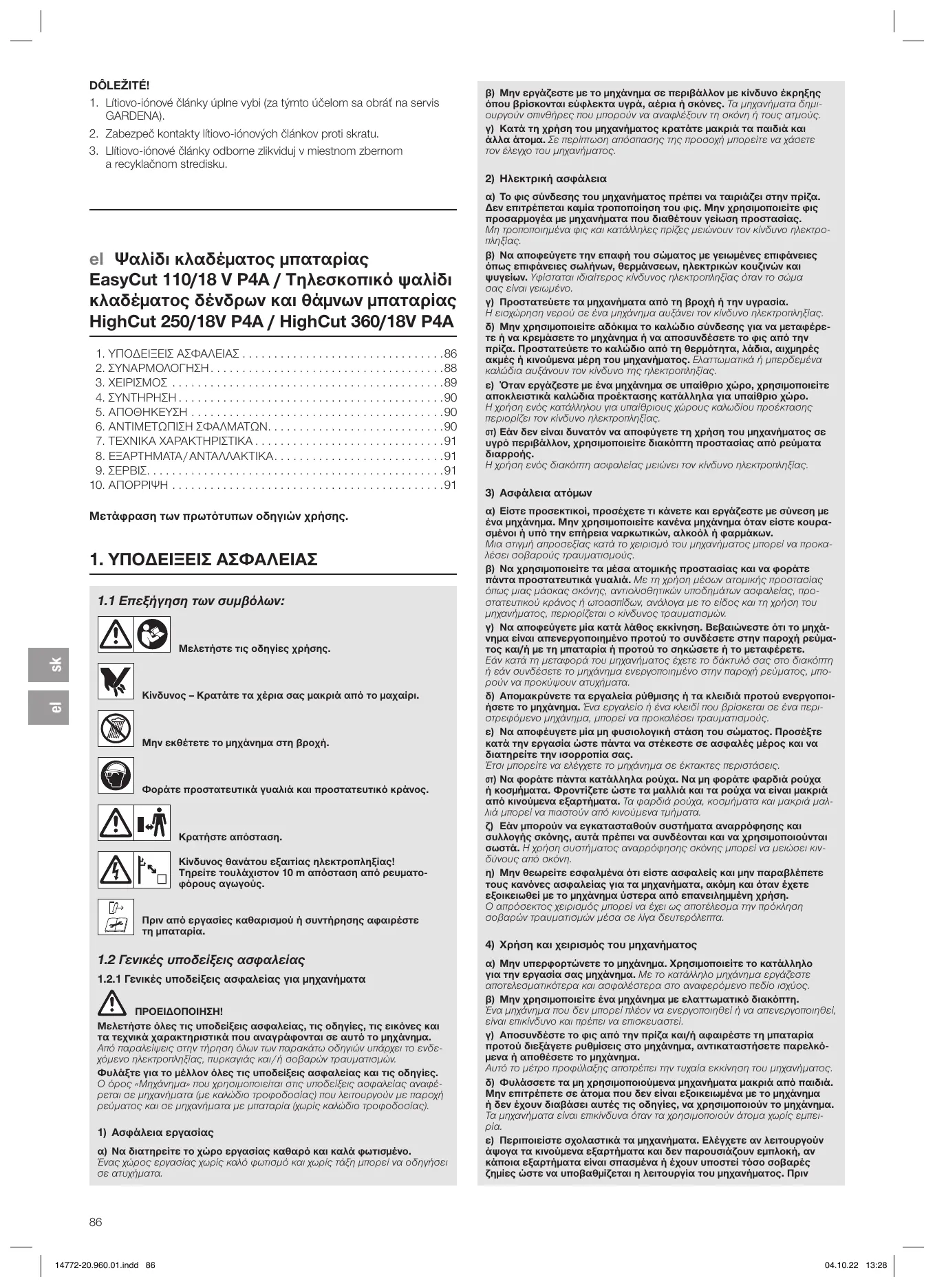 EasyCut 110/18V P4A, HighCut 250/18V P4A, HighCut 360/18V P4A - Coupe branches GARDENA - Notice d'utilisation et mode d'emploi gratuit