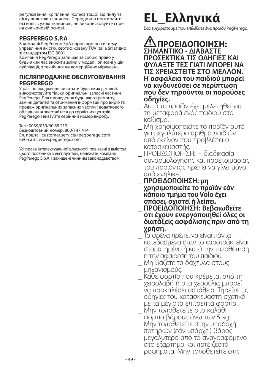 VOLO - Παιδικά καρότσια PEG PEREGO - Notice d'utilisation et mode d'emploi gratuit