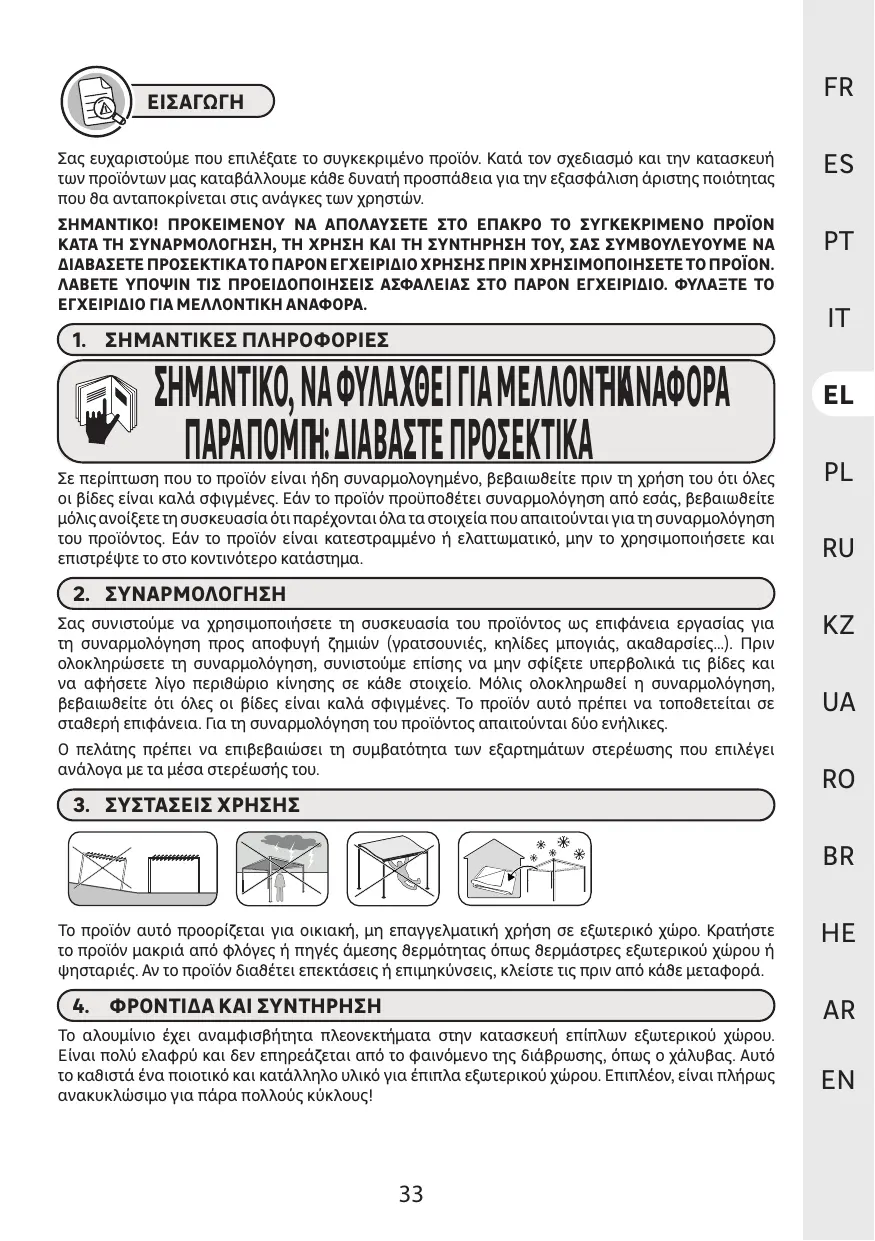 Une fois Le montage terminé, assurez vous que toutes Les vis soient bien sérrées. Ce produit doit être placé sur une surface stable. Ce produit necessite deux adultes pour Le montage