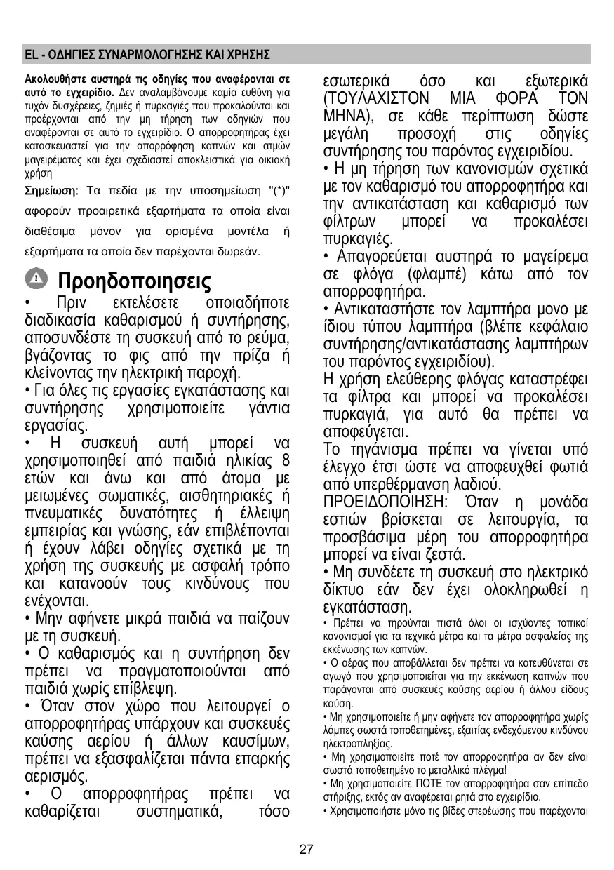 + La hotte doit être régulièrement nettoyée à la fois à l'intérieur et à l'extérieur (AU MOINS UNE FOIS PAR MOIS), cela devrait se faire en