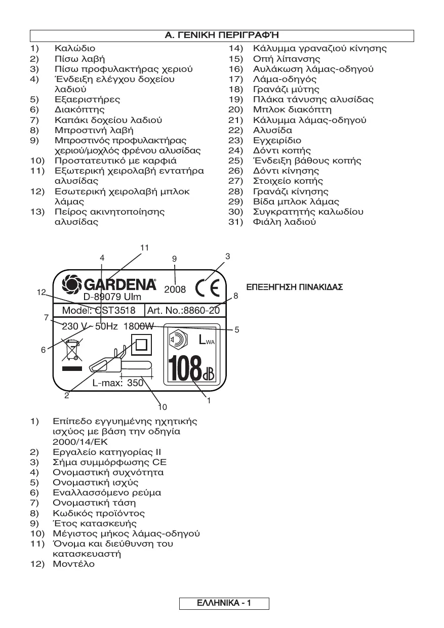 Téléchargez la notice de votre αλυσοπρίονο au format PDF gratuitement ! Retrouvez votre notice CST 3018 - CST 3518 - GARDENA et reprennez votre appareil électronique en main. Sur cette page sont publiés tous les documents nécessaires à l'utilisation de votre appareil CST 3018 - CST 3518 de la marque GARDENA.