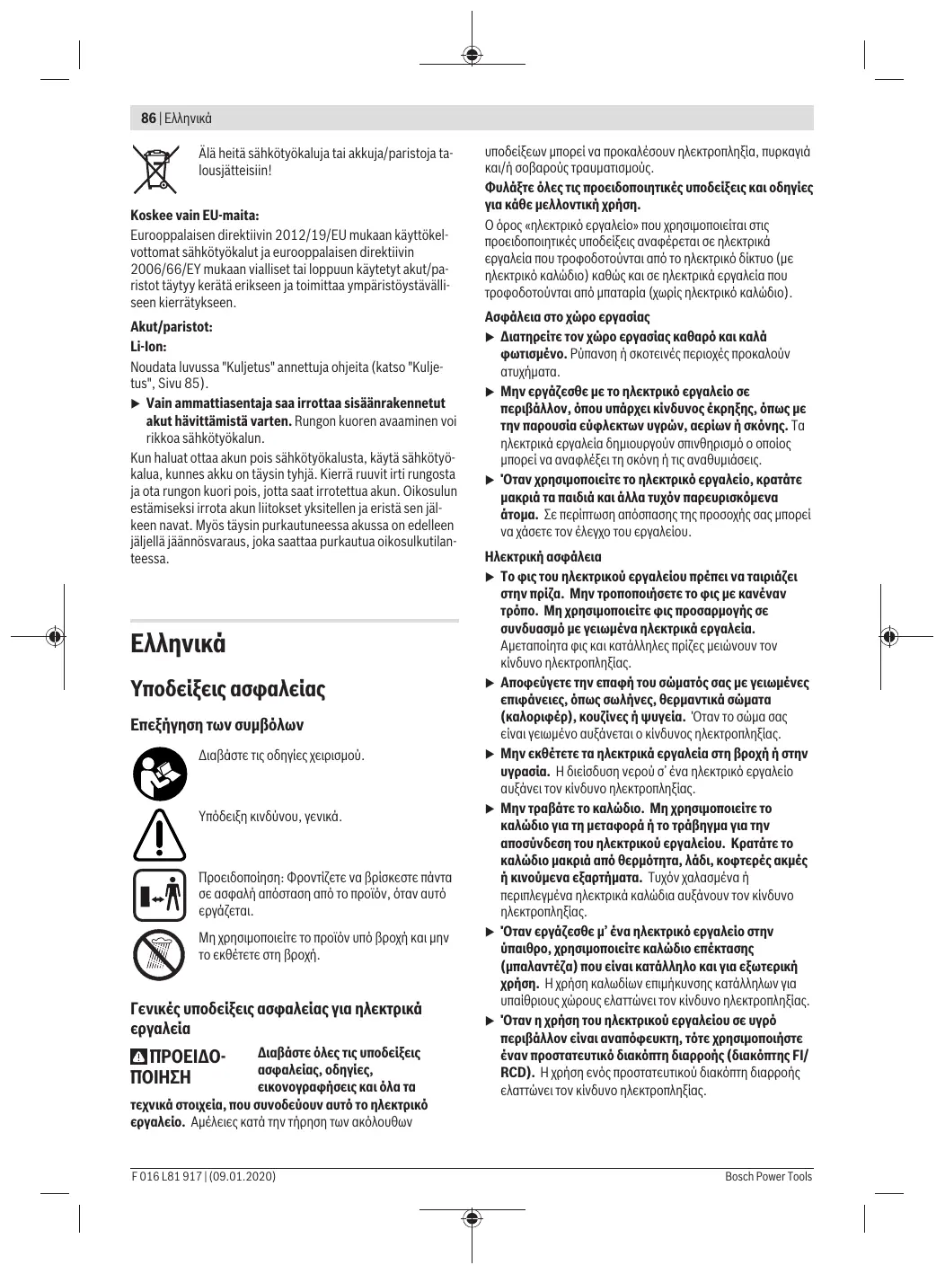 Ne jetez pas les outils électroportatifs etes ac- cus/piles avec les ordures ménagères !