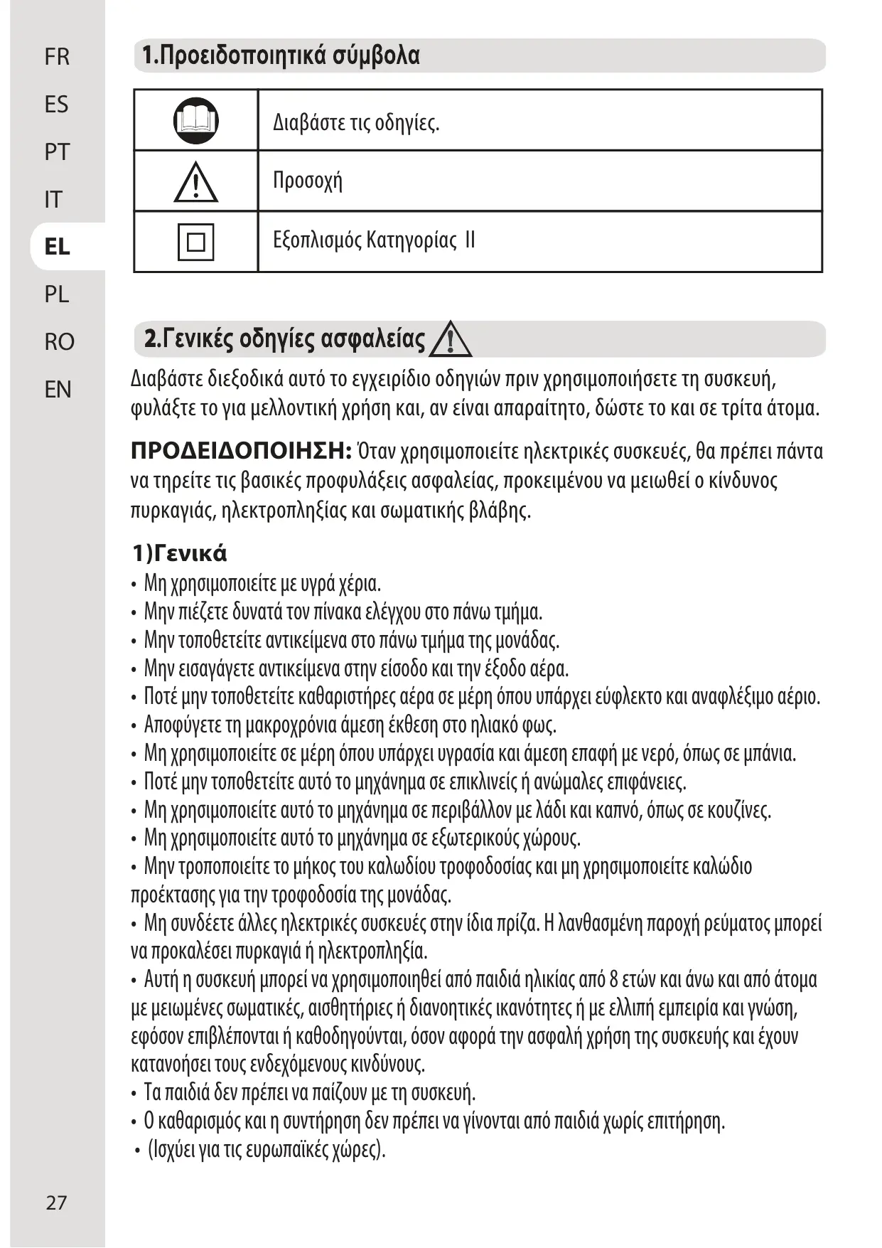 + Cet appareil n'est pas destiné à être utilisé par des personnes (y compris des enfants) ayant des capacités physiques, sensorielles ou mentales réduites ou manquant d'expérience et de connais- sances, à moins qu'elles n'aient reçu une surveillance ou des instructions concernant l'utilisation de l'appareil par une personne responsable de leur sécurité.