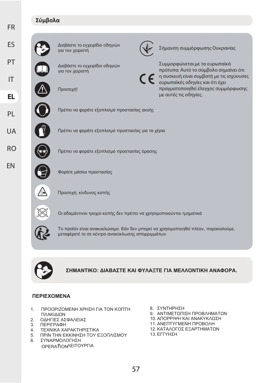 Toute modiÿcation pouvant entraîner un changement des caractéristiques d'origine de la machine, par exemple, la vitesse de rotation ou le diamètre maximal de la molette de coupe, ne peut être e‘ectuée que par le fabricant de la machine qui conÿrme que la machine est toujours conforme aux règles de sécurité.