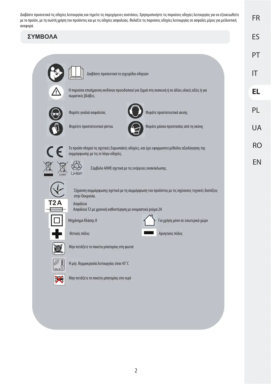 PROTECTION DE L'ENVIRONNEMENT Les produit électriques usagés ne doivent pas être jetés avec les ordures ménagères. Conformément à a directive européenne relative aux batteries, les batteries usagées ou défectueuses doivent être collectées séparément et mises au rebut d'une manière écologique. Vellez à ce