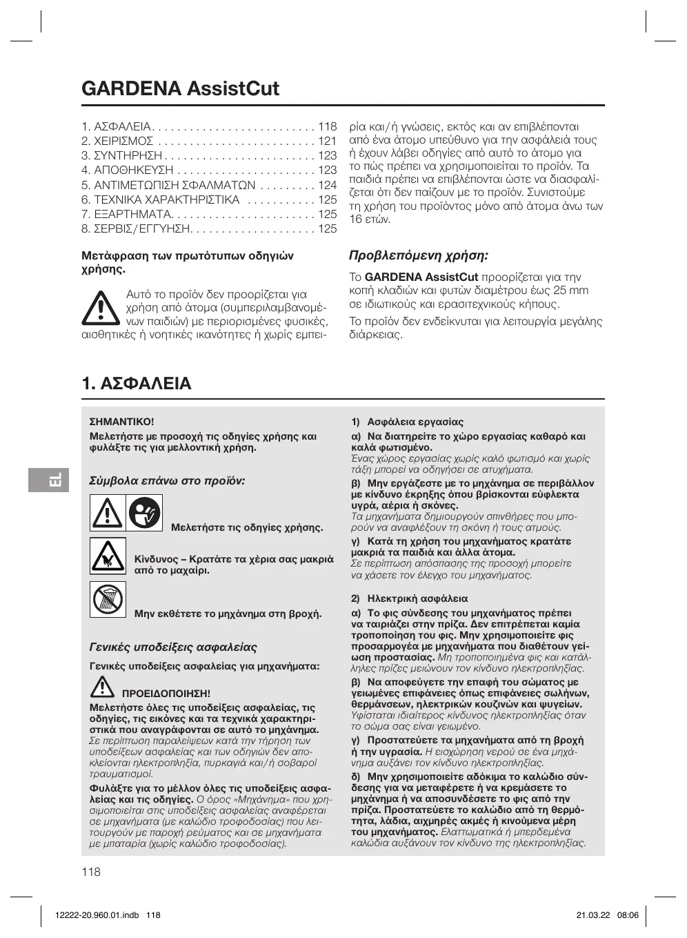 Téléchargez la notice de votre Ηλεκτρικά κλαδευτήρια au format PDF gratuitement ! Retrouvez votre notice 12222 - GARDENA et reprennez votre appareil électronique en main. Sur cette page sont publiés tous les documents nécessaires à l'utilisation de votre appareil 12222 de la marque GARDENA.