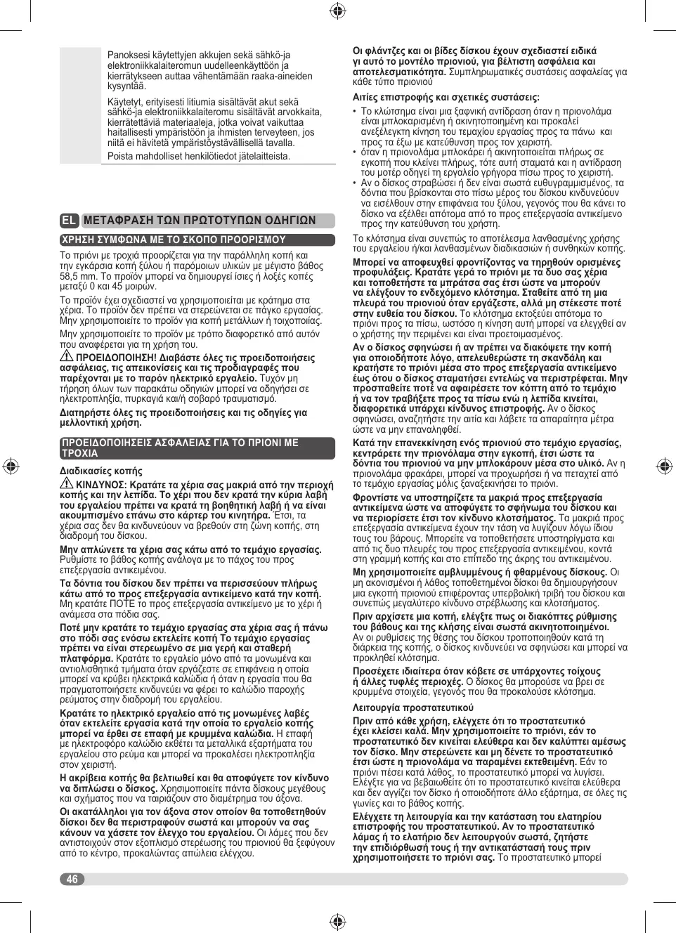 + Lorsque la lame est pincée ou bloquée par la fermeture de l'entaille, la lame se bloque et la réaction du moteur pousse rapidement l'appareil vers l'opérateur.