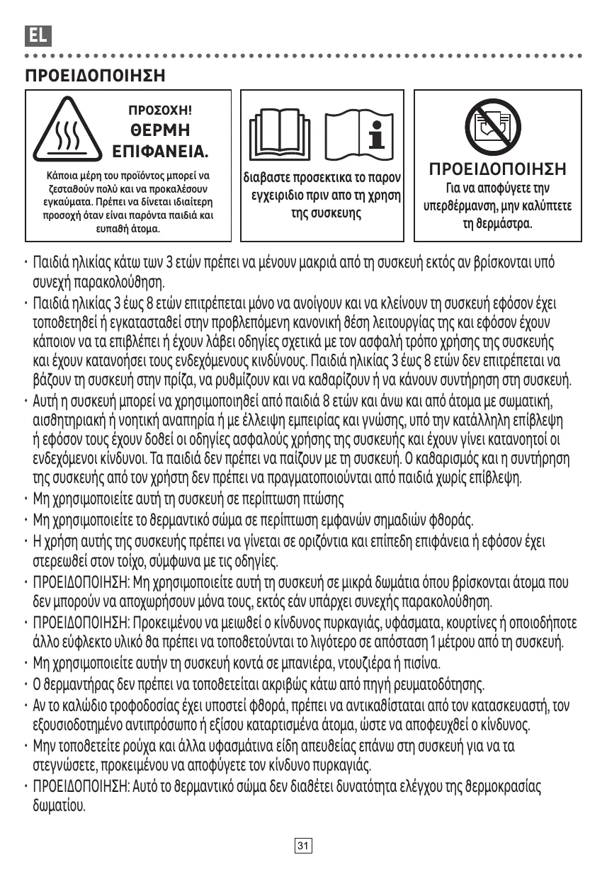 + AVERTISSEMENT: Ce radiateur n'est pas équipé d'un dispositif de contrôle de la température ambiante.