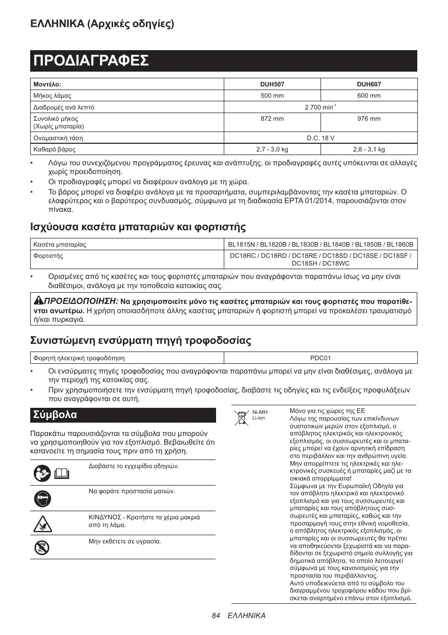 DUH507 - DUH607 - Κουρευτικές μηχανές φράχτη MAKITA - Notice d'utilisation et mode d'emploi gratuit