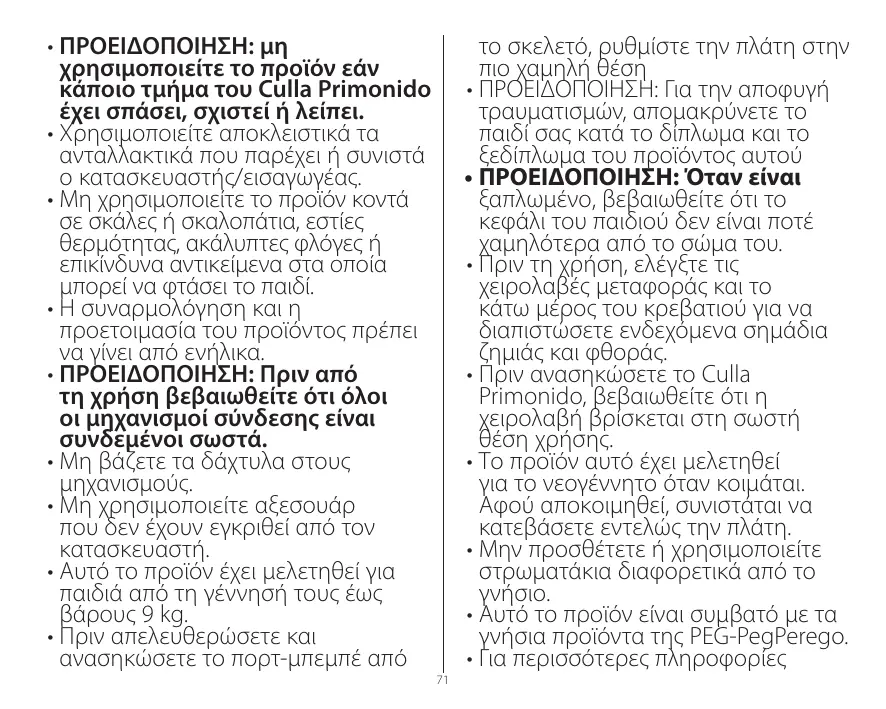 Retrouvez gratuitement la notice de l'appareil culla primonido PEG PEREGO au format PDF.