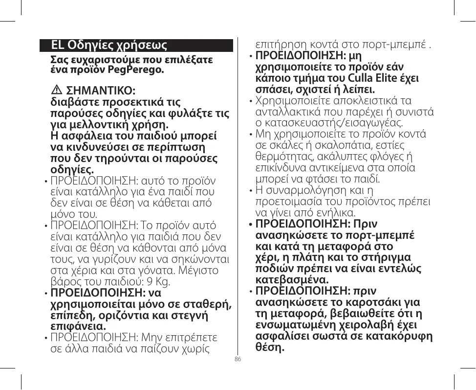 Culla Elite - Καρότσια και αξεσουάρ PEG PEREGO - Notice d'utilisation et mode d'emploi gratuit