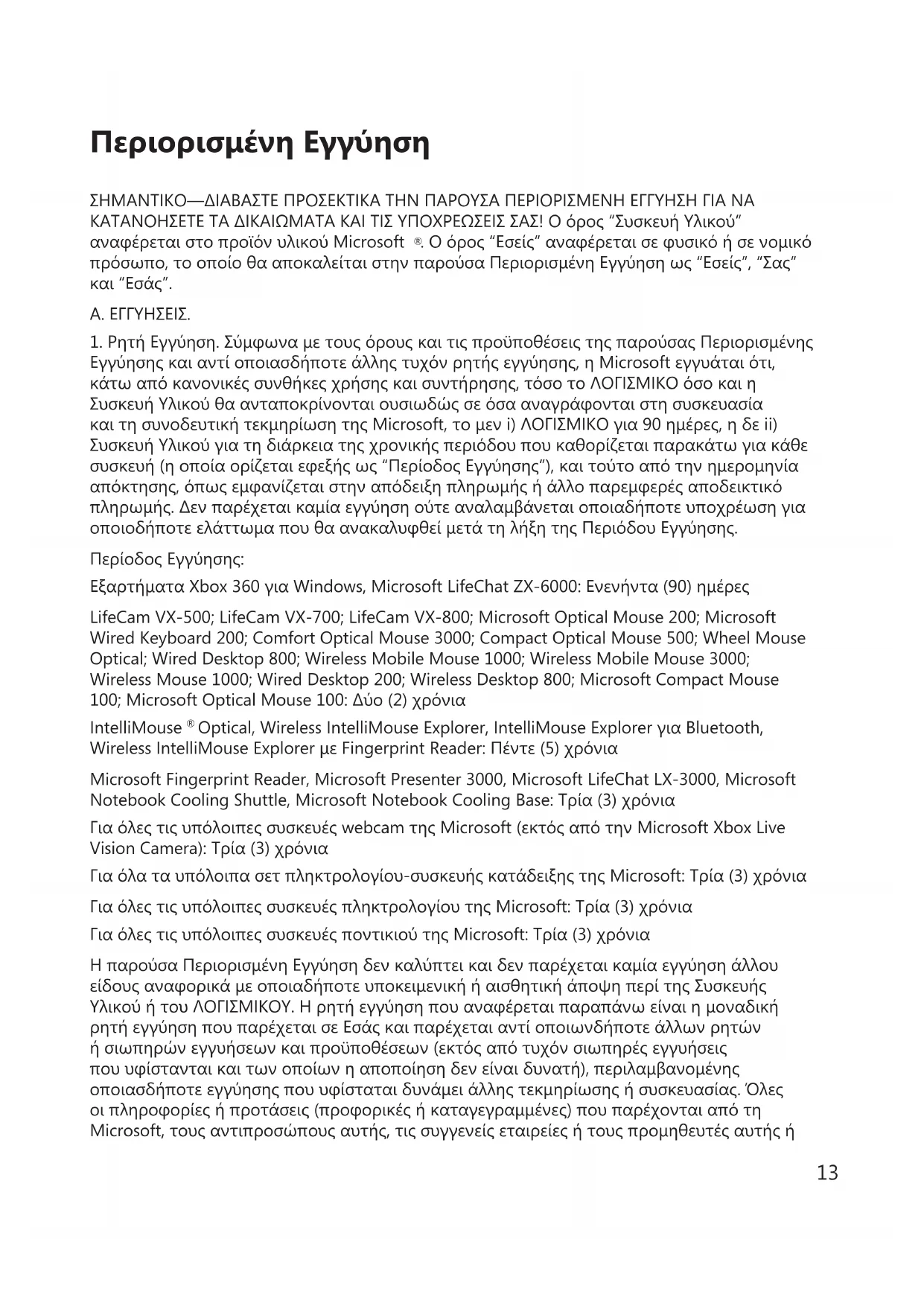 Για όλες τις υπόλοιπες συσκευές πληκτρολογίου της Microsoft: Τρία (3) χρόνια