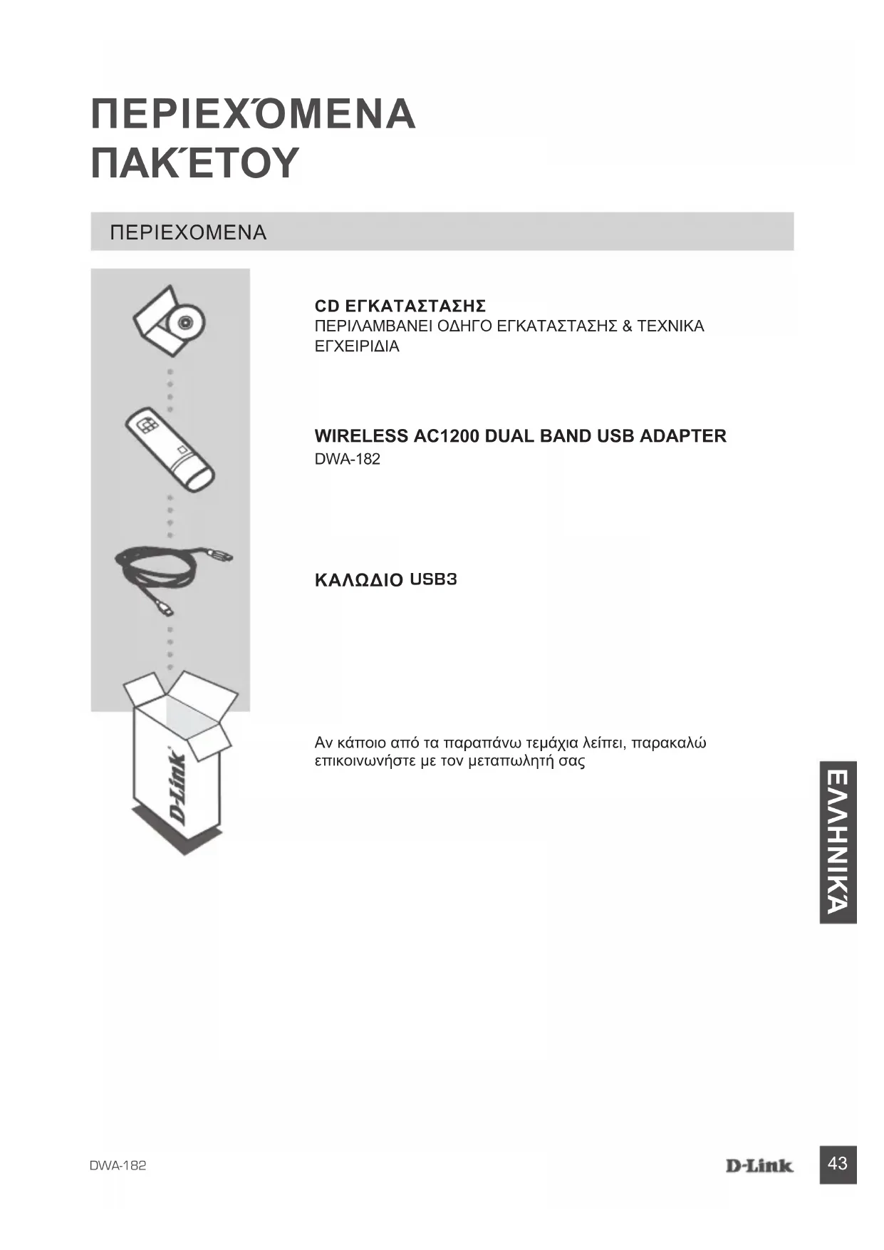 DWA-182Αν κάποιο από τα παραπάνω τεμάχια λείπει, παρακαλώ επικοινωνήστε με τον μεταπωλητή σας
