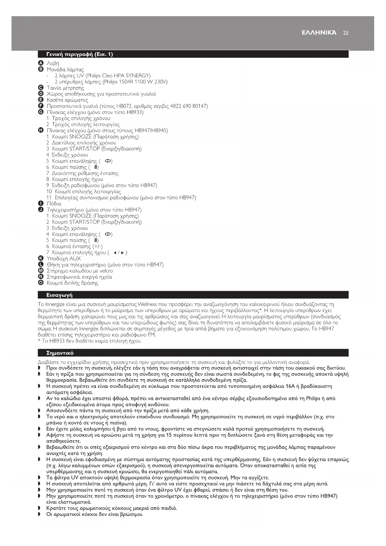 ΕΓΧΕΙΡΊΔΙΟ ΧΡΉΣΗΣ Innergize HB945 PHILIPS
