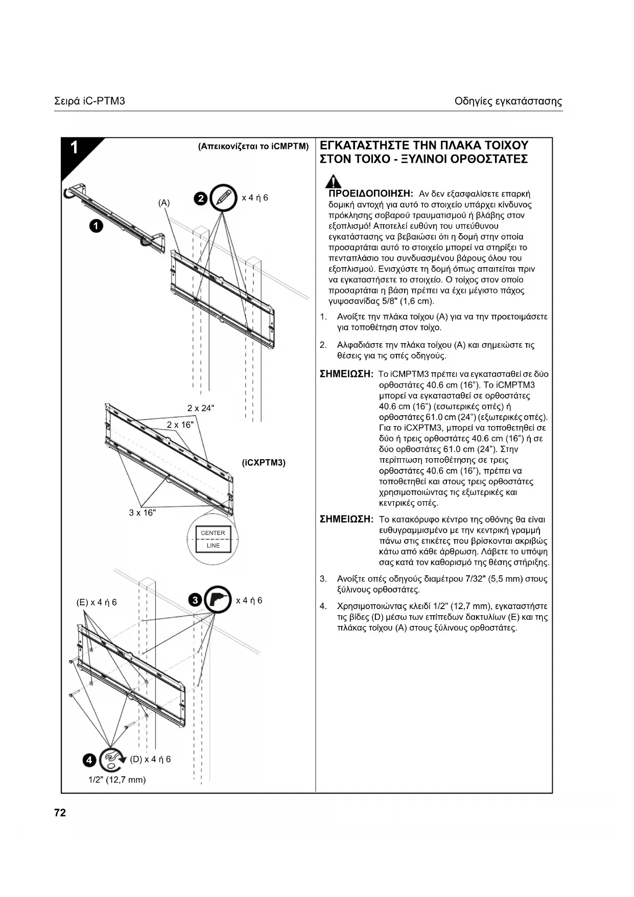 x 4 ή 6 (D) x 4 ή 6 (E) x 4 ή 6 x 4 ή 6 2 x 24" 2 x 16" (iCXPTM3) 3 x 16"Οδηγίες εγκατάστασης Σειρά iC-PTM3