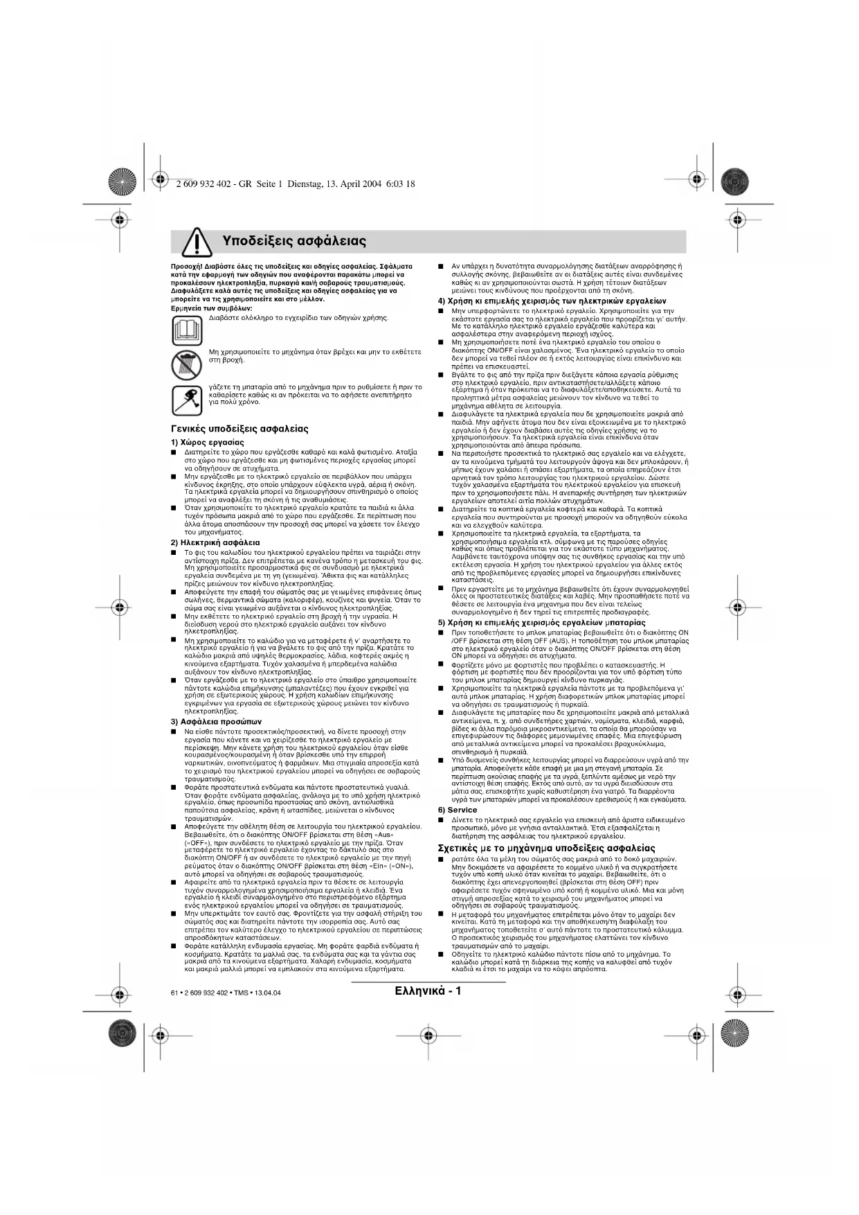 2 609 932 402 - GR Seite 1 Dienstag, 13. April 2004 6:03 18 61 • 2 609 932 402 • TMS • 13.04.04Eλληνικά - 2