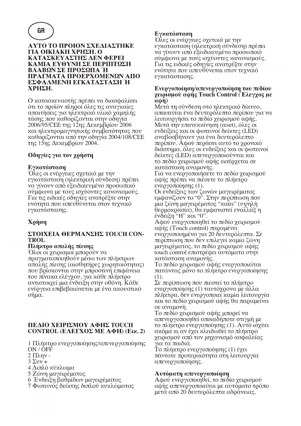 ΠΕΔΙΟ ΧΕΙΡΙΣΜΟΥ ΑΦΗΣ TOUCH CONTROL (ΕΛΕΓΧΟΣ ΜΕ ΑΦΗ) (Εικ. 2)