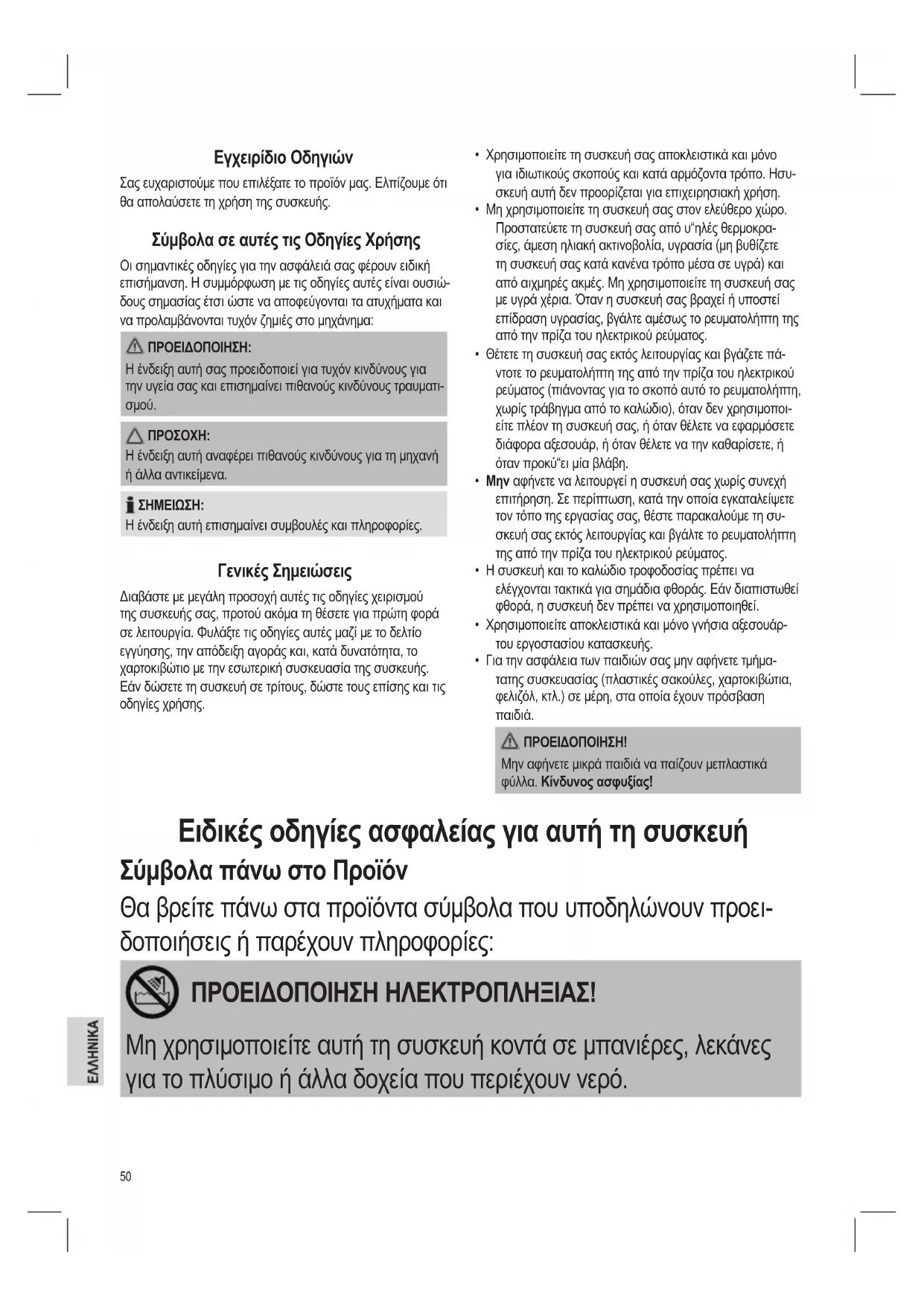Ειδικές οδηγίες ασφαλείας για αυτή τη συσκευή
