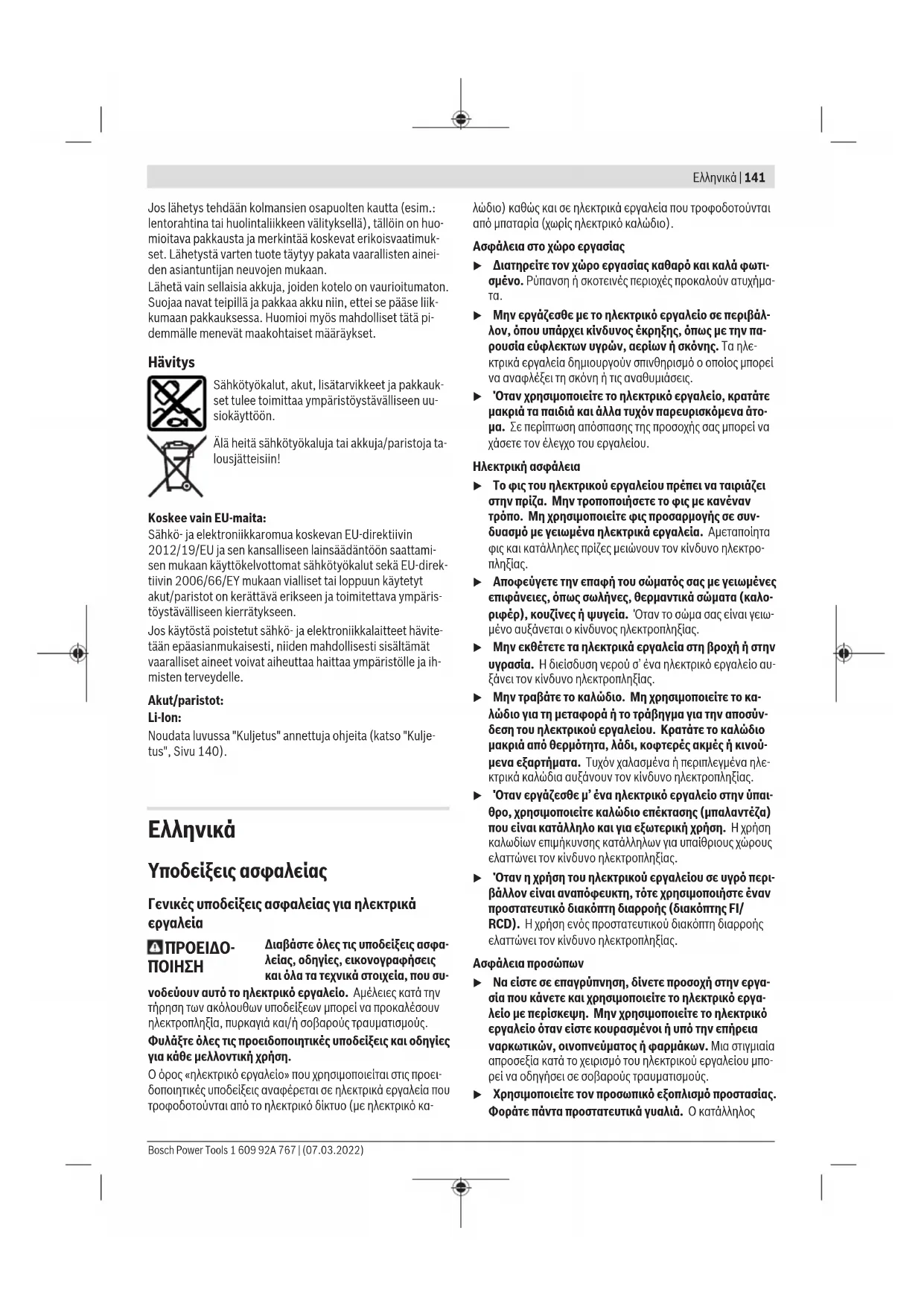 ρεί να οδηγήσει σε σοβαρούς τραυματισμούς. u Χρησιμοποιείτε τον προσωπικό εξοπλισμό προστασίας. Φοράτε πάντα προστατευτικά γυαλιά. Ο κατάλληλος Bosch Power Tools 1 609 92A 767 | (07.03.2022)142 | Ελληνικά