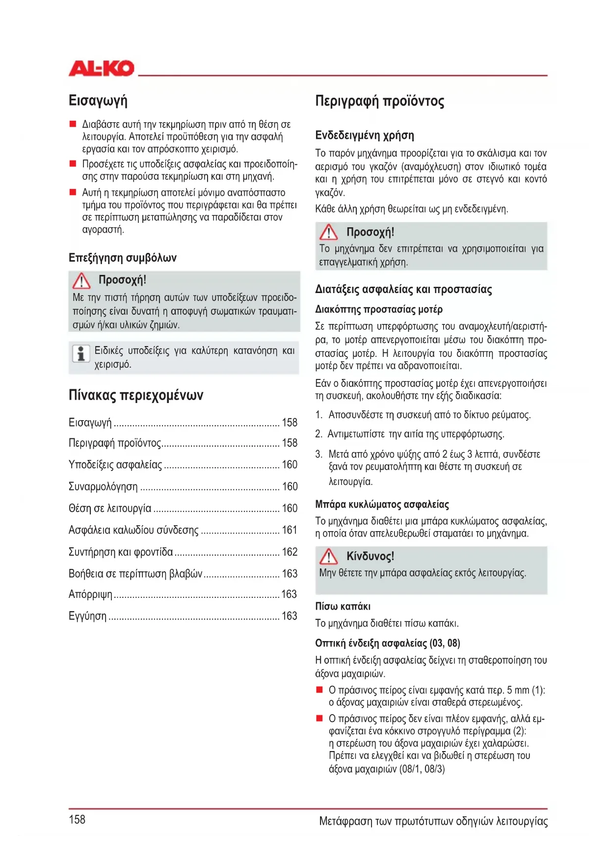 GR: Μετάφραση των γνήσιων οδηγιών χρήσης 158