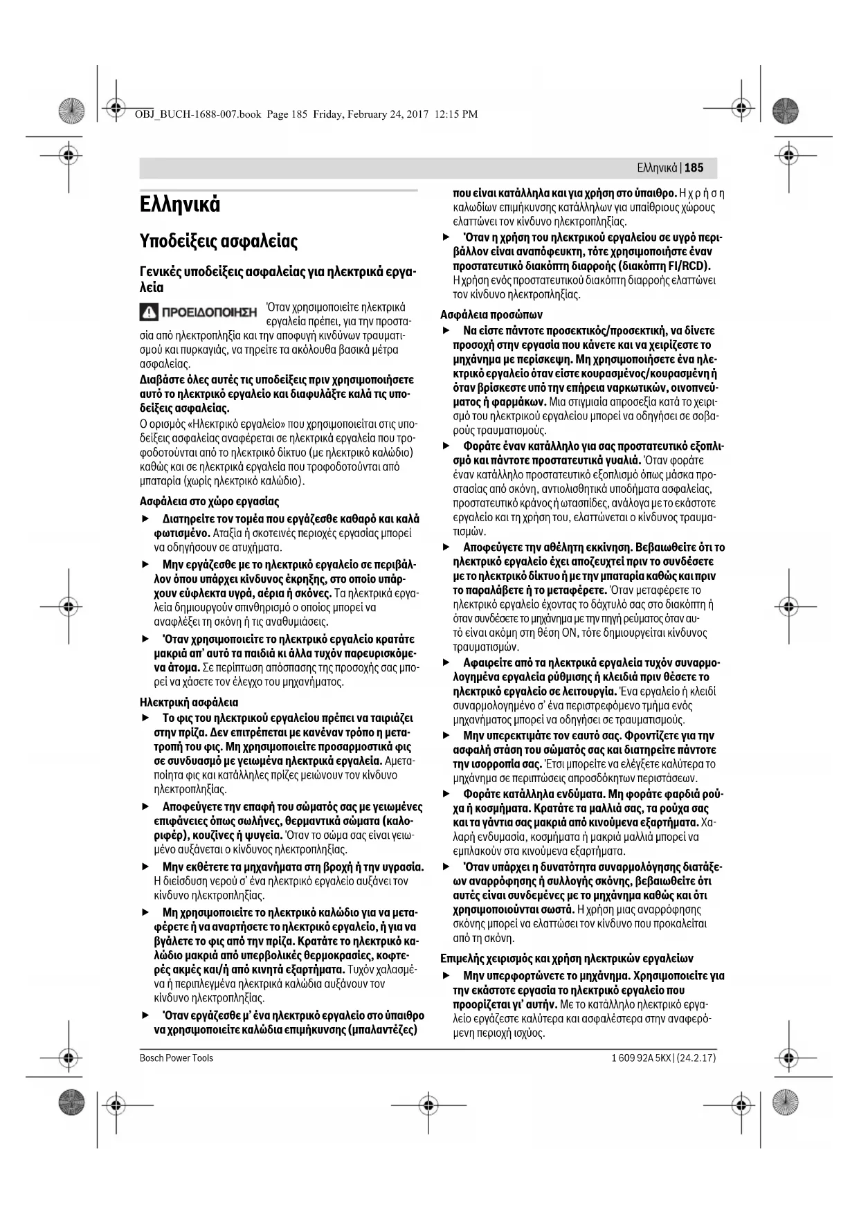 OBJ_BUCH-1688-007.book Page 184 Friday, February 24, 2017 12:15 PMΕλληνικά | 185 Bosch Power Tools1 609 92A 5KX | (24.2.17) Ελληνικά