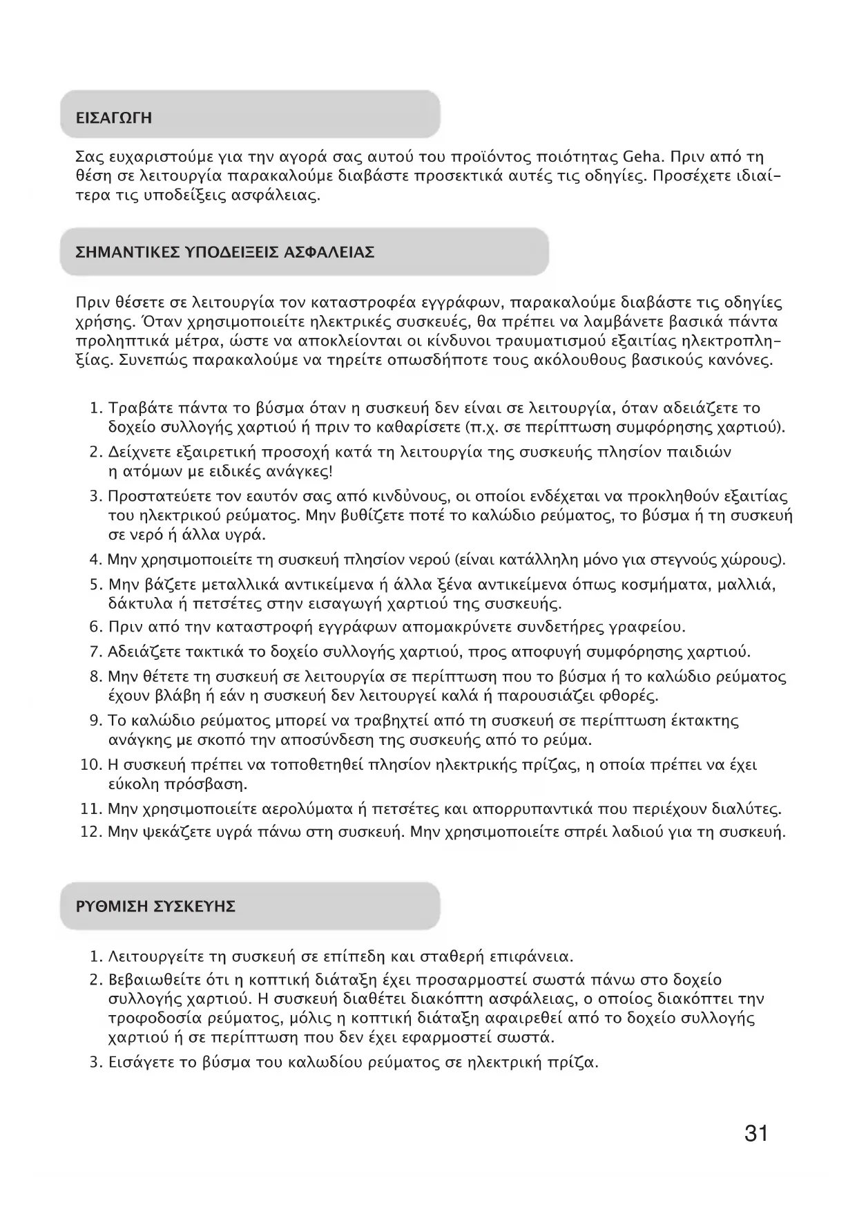 Κατεβάστε τις οδηγίες για το καταστροφέας εγγράφων σε μορφή PDF δωρεάν! Βρείτε το εγχειρίδιό σας Home & Office X5 - GEHA και πάρτε ξανά την ηλεκτρονική σας συσκευή στα χέρια σας. Σε αυτή τη σελίδα δημοσιεύονται όλα τα έγγραφα που απαιτούνται για τη χρήση της συσκευής σας. Home & Office X5 της μάρκας GEHA.