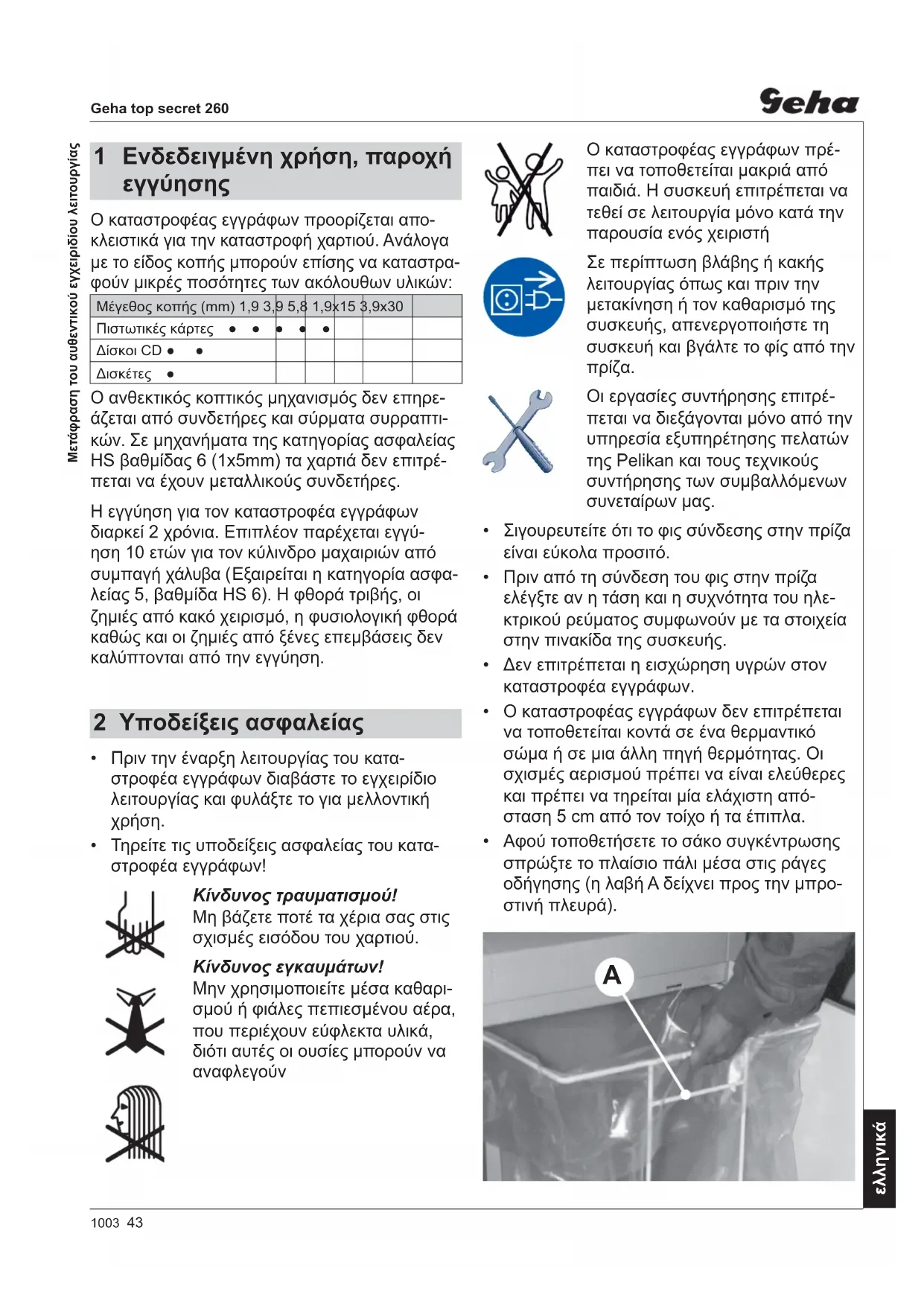 Κατεβάστε τις οδηγίες για το καταστροφέας εγγράφων σε μορφή PDF δωρεάν! Βρείτε το εγχειρίδιό σας Top Secret 260 S6 - GEHA και πάρτε ξανά την ηλεκτρονική σας συσκευή στα χέρια σας. Σε αυτή τη σελίδα δημοσιεύονται όλα τα έγγραφα που απαιτούνται για τη χρήση της συσκευής σας. Top Secret 260 S6 της μάρκας GEHA.