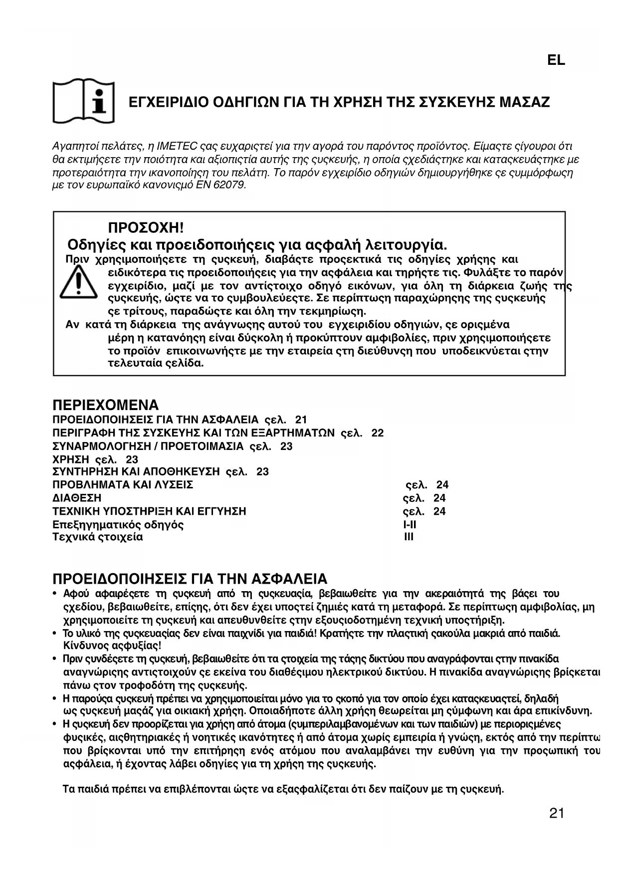 Αγαπητοί πελάτεσ, η IMETEC σασ ευχαριστεί για την αγορά του παρόντοσ προϊόντοσ. Είμαστε σίγουροι ότι
