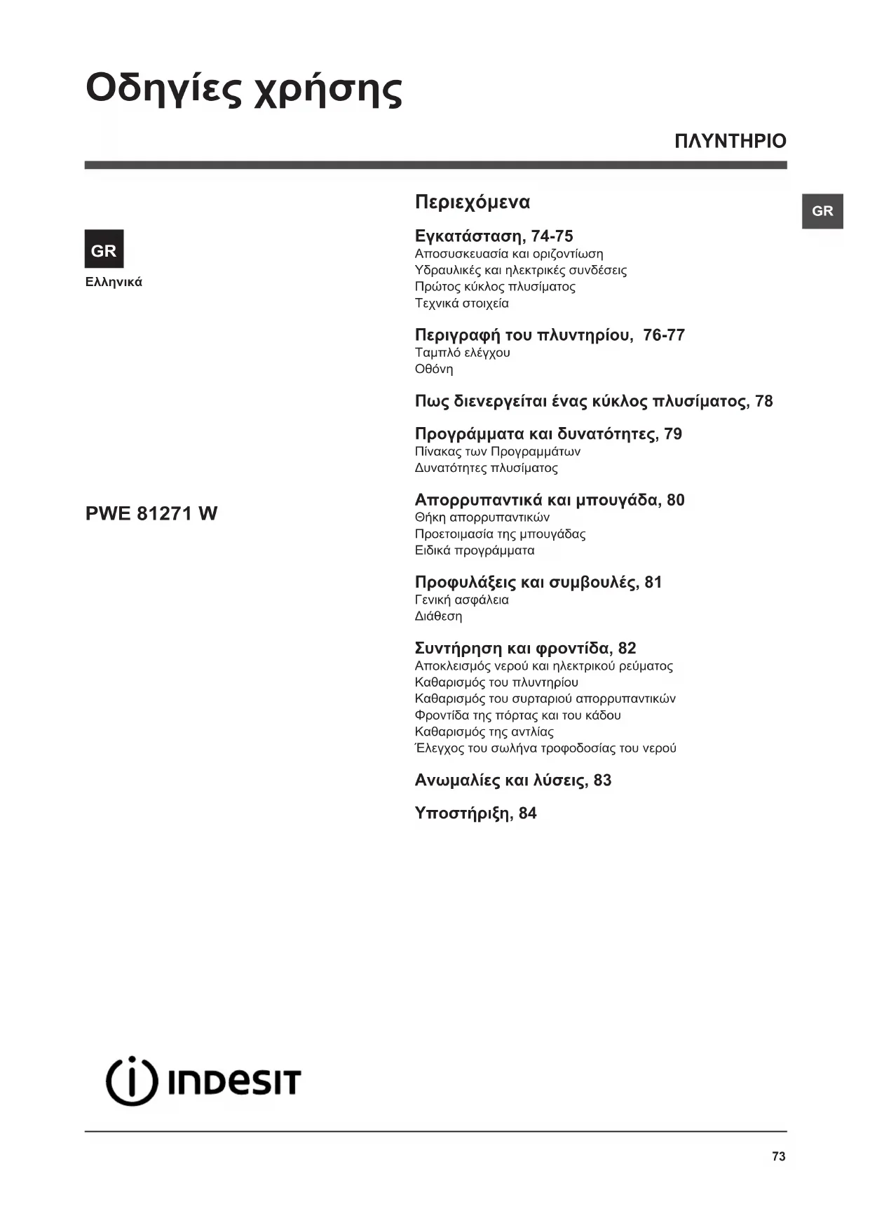 ΕΓΧΕΙΡΊΔΙΟ ΧΡΉΣΗΣ PWE 81271 W (EU) INDESIT