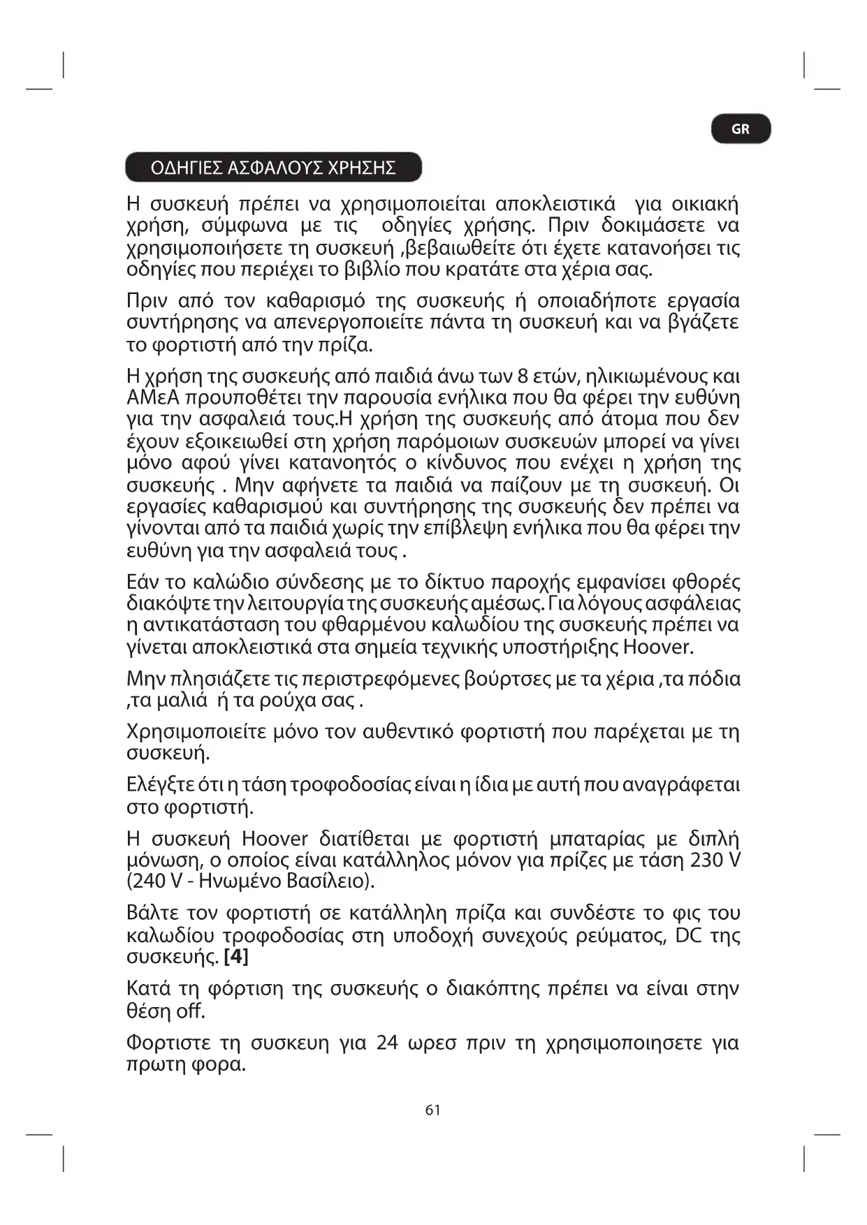 γίνεται αποκλειστικά στα σημεία τεχνικής υποστήριξης Hoover.